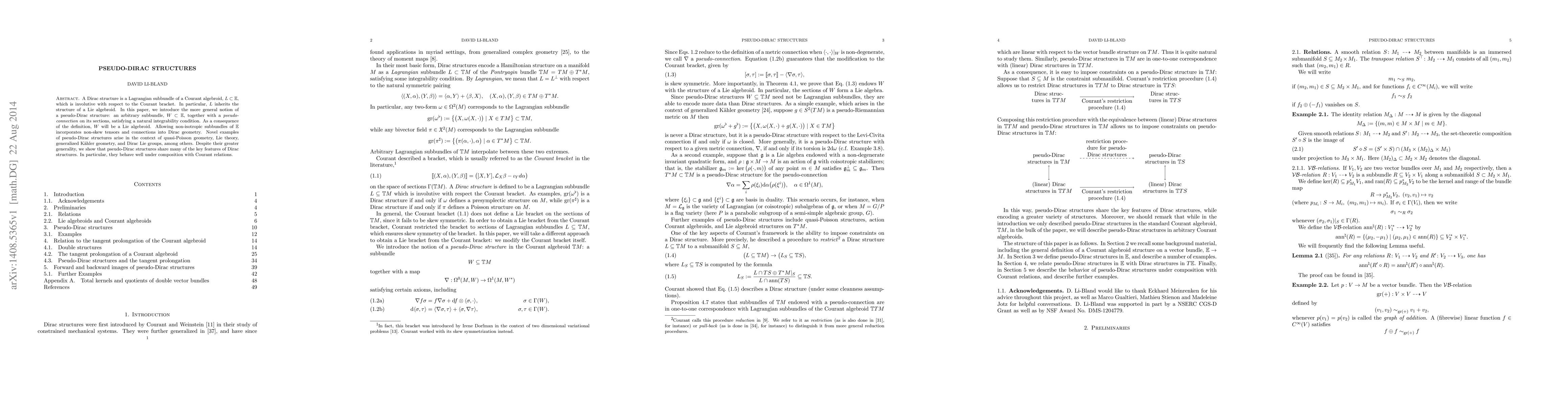 A Dirac structure is a Lagrangian subbundle of a Courant algebroid, $L\subset\mathbb{E}$, which is involutive with respect to the Courant bracket. In particular, $L$ inherits the structure of a Lie algebroid. In this paper, we introduce the more general notion of a pseudo-Dirac structure: an arbitrary subbundle, $W\subset\mathbb{E}$, together with a pseudo-connection on its sections, satisfying a natural integrability condition. As a consequence of the definition, $W$ will be a Lie algebroid. Allowing non-isotropic subbundles of $\mathbb{E}$ incorporates non-skew tensors and connections into Dirac geometry. Novel examples of pseudo-Dirac structures arise in the context of quasi-Poisson geometry, Lie theory, generalized K\"ahler geometry, and Dirac Lie groups, among others. Despite their greater generality, we show that pseudo-Dirac structures share many of the key features of Dirac structures. In particular, they behave well under composition with Courant relations.