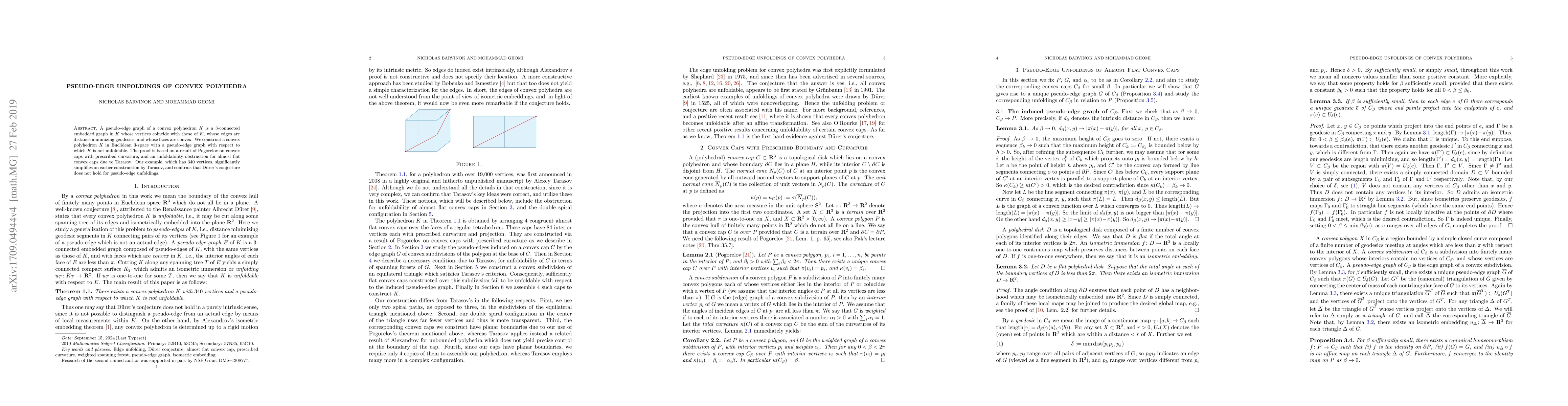 This paper constructs a convex polyhedron with a pseudo-edge graph for which the polyhedron is not unfoldable, using results from Pogorelov and Tarasov. This example disproves Durer's conjecture for pseudo-edge unfoldings and simplifies a previous construction by Tarasov.