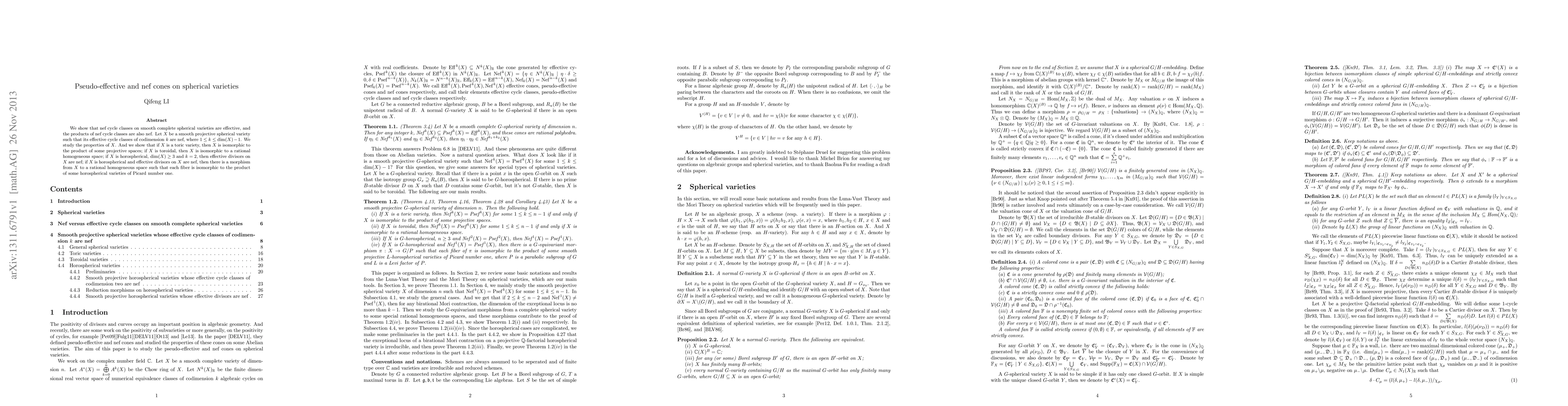 This paper demonstrates that nef cycle classes on smooth complete spherical varieties are effective and their products remain nef. It further explores the structure of such varieties, showing that toric varieties decompose into products of projective spaces, toroidal varieties are rational homogeneous spaces, and horospherical varieties exhibit specific nef divisor properties.