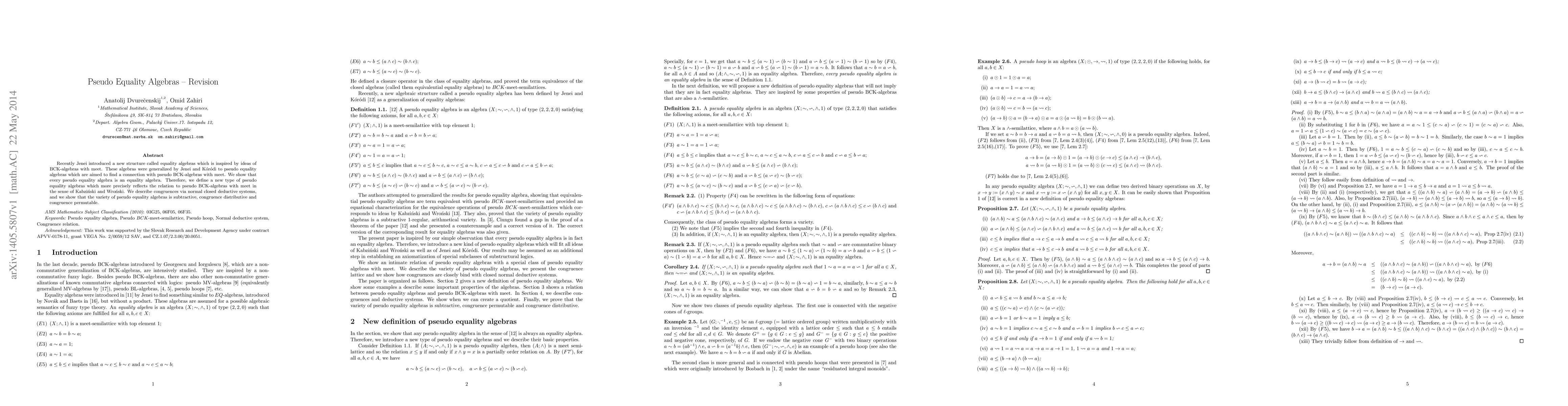 Recently Jenei introduced a new structure called equality algebras which is inspired by ideas of BCK-algebras with meet. These algebras were generalized by Jenei and K\'or\'odi to pseudo equality algebras which are aimed to find a connection with pseudo BCK-algebras with meet. We show that every pseudo equality algebra is an equality algebra. Therefore, we define a new type of pseudo equality algebras which more precisely reflects the relation to pseudo BCK-algebras with meet in the sense of Kabzi\'nski and Wro\'nski. We describe congruences via normal closed deductive systems, and we show that the variety of pseudo equality algebras is subtractive, congruence distributive and congruence permutable.