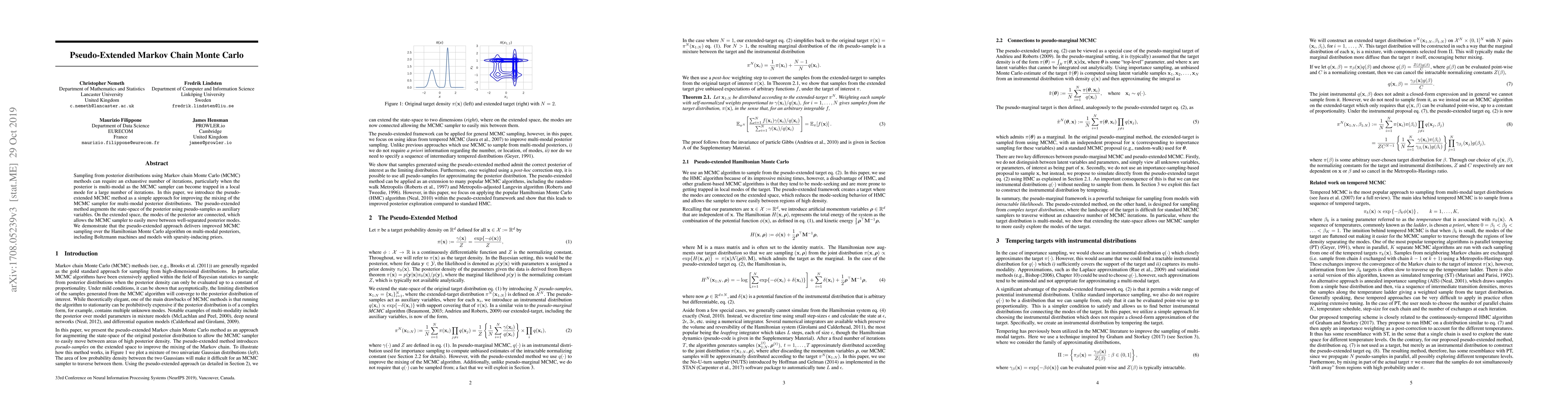 This paper introduces the pseudo-extended MCMC method to enhance the mixing of MCMC samplers for multi-modal posterior distributions by augmenting the state-space with pseudo-samples. This approach connects posterior modes, facilitating better sampling and outperforming Hamiltonian Monte Carlo on complex models.
