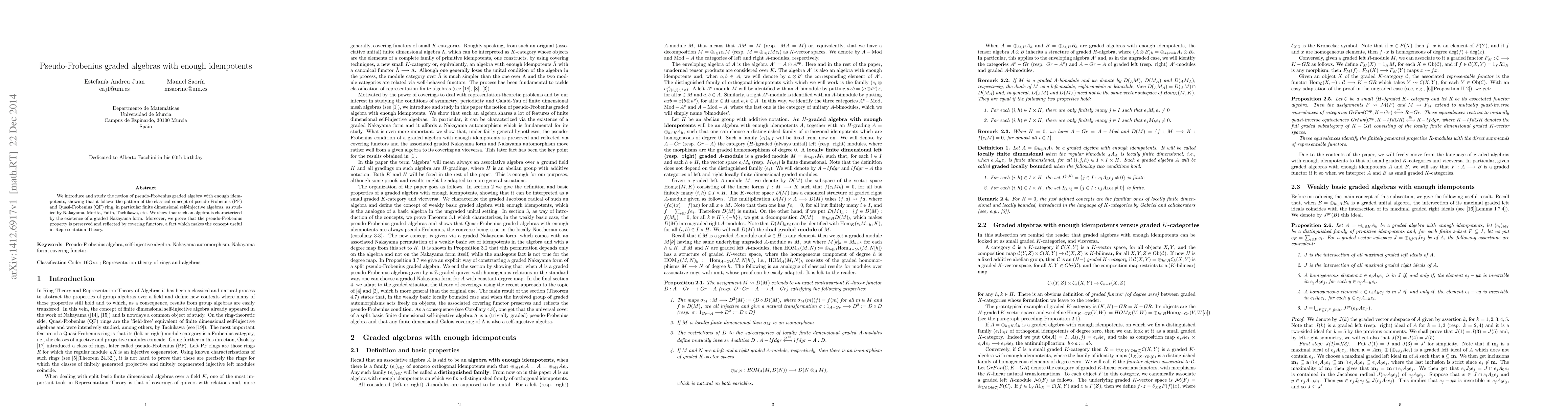 This paper introduces pseudo-Frobenius graded algebras with enough idempotents, linking them to classical pseudo-Frobenius and quasi-Frobenius rings. It establishes that these algebras are characterized by a graded Nakayama form and highlights their significance in Representation Theory through the preservation of the pseudo-Frobenius property via covering functors.