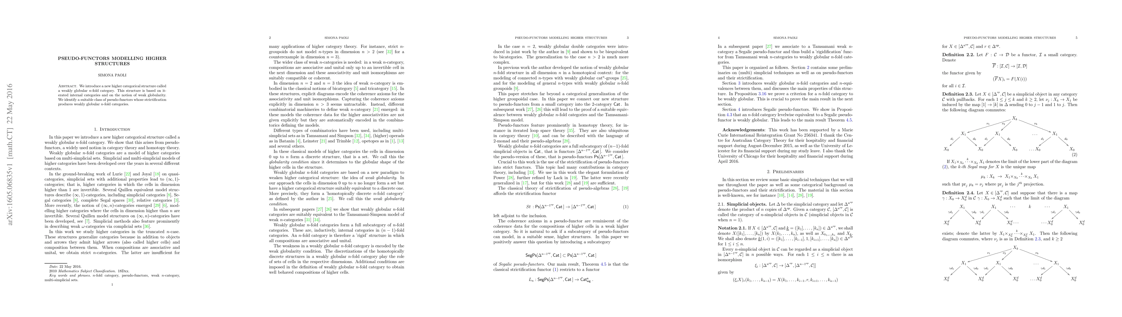 This paper introduces a new higher categorical structure known as weakly globular n-fold categories based on iterated internal categories and weak globularity. It identifies a class of pseudo-functors that, when strictlyified, generate these new categorical structures.