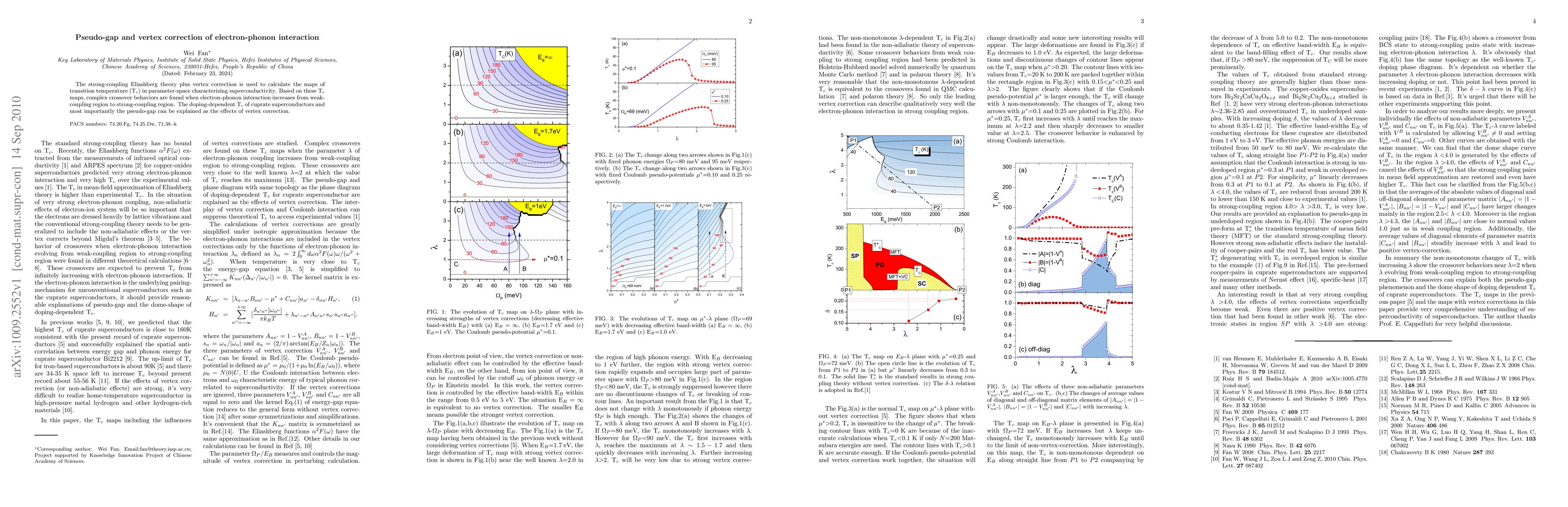 This paper employs strong-coupling Eliashberg theory with vertex correction to explore superconductivity transition temperature (Tc) maps, revealing complex crossover behaviors in electron-phonon interactions. The study explains the doping-dependent Tc in cuprate superconductors and the pseudo-gap phenomenon through vertex correction effects.