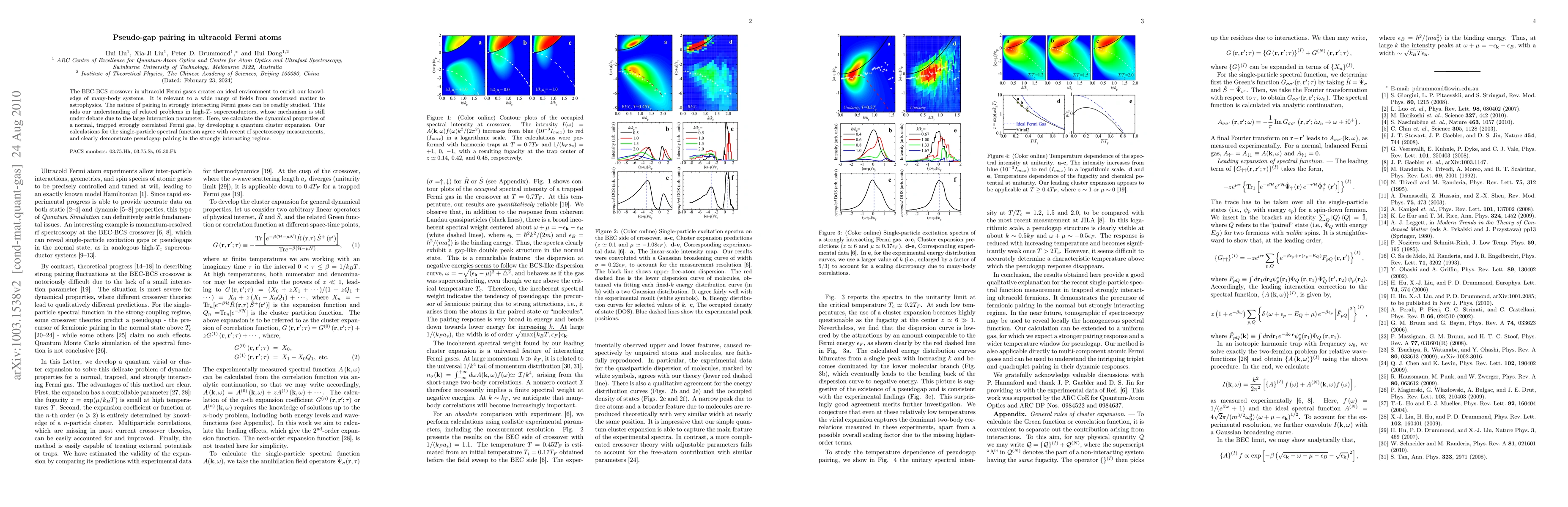 This paper investigates the pseudo-gap pairing in ultracold Fermi gases transitioning from BEC to BCS superfluid states, using a quantum cluster expansion. It demonstrates agreement between calculated single-particle spectral functions and recent measurements, highlighting the relevance to understanding high-T_{c} superconductors.