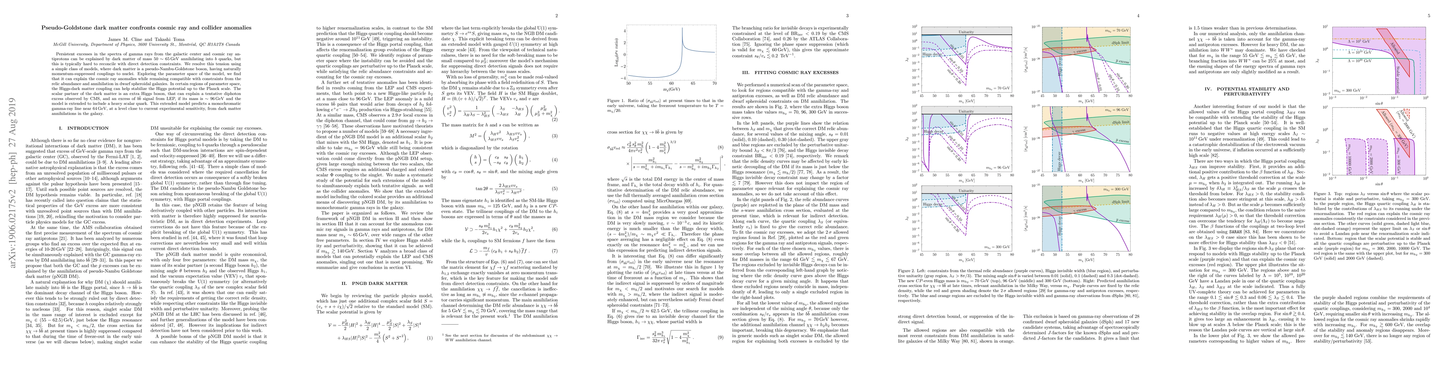 This paper proposes a pseudo-Nambu-Goldstone boson as dark matter that can explain cosmic ray anomalies and gamma-ray excesses while remaining compatible with direct detection and relic abundance constraints. The model also suggests a scalar partner that may account for certain collider anomalies.