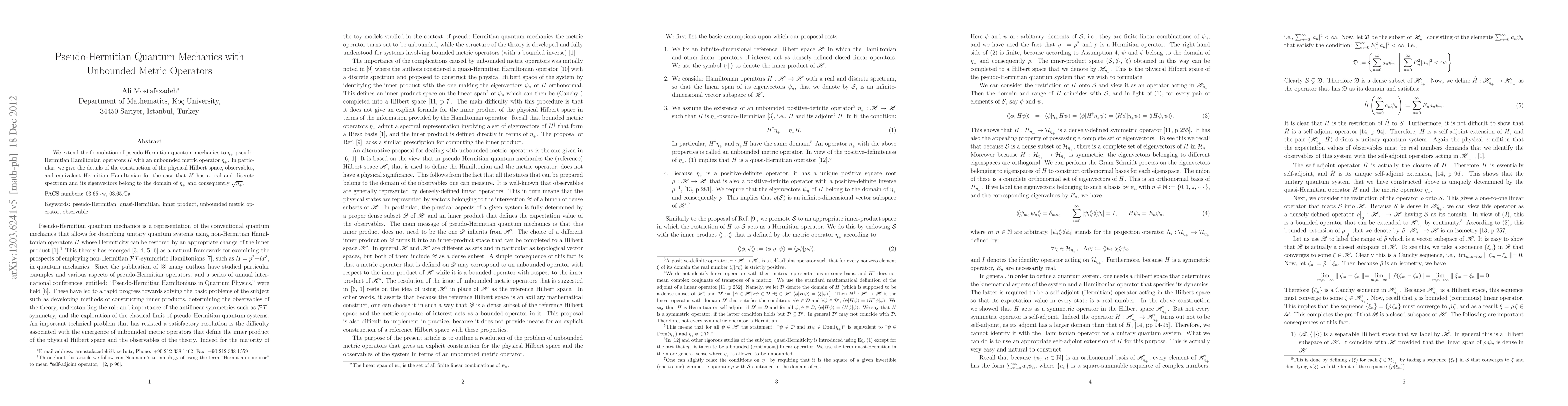 This paper extends pseudo-Hermitian quantum mechanics to Hamiltonians with an unbounded metric operator, detailing the construction of the physical Hilbert space and equivalent Hermitian Hamiltonian for systems with real, discrete spectra. It focuses on scenarios where the Hamiltonian's eigenvectors lie within the domain of the metric operator.