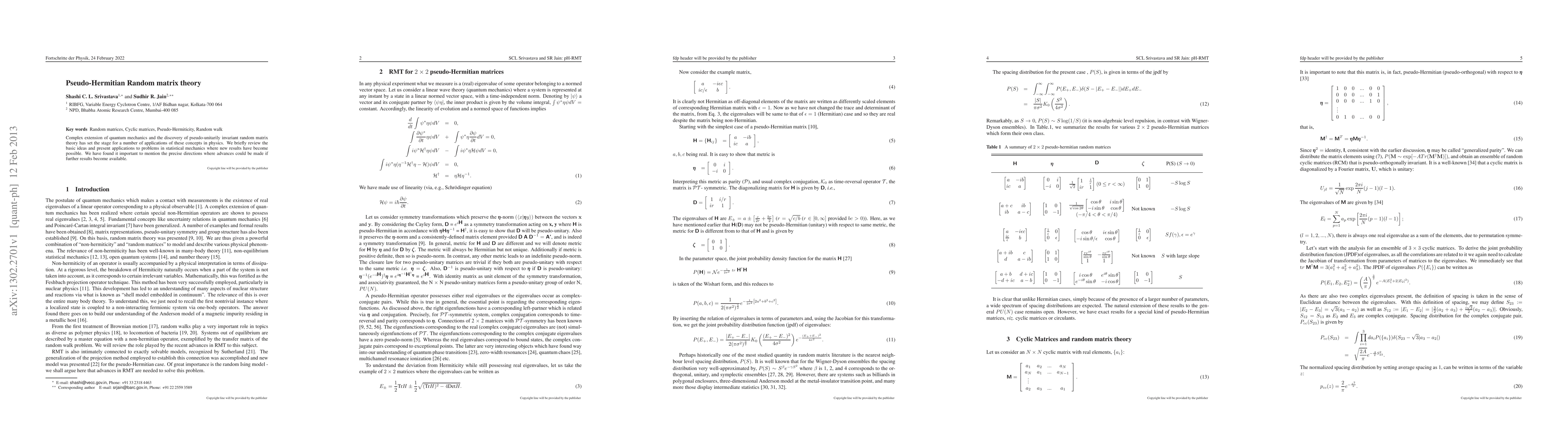 Summary: This paper reviews the pseudo-Hermitian random matrix theory, a complex extension of quantum mechanics, and explores its applications in statistical mechanics, highlighting potential future research directions. It emphasizes the importance of this theory for advancing understanding in these areas.