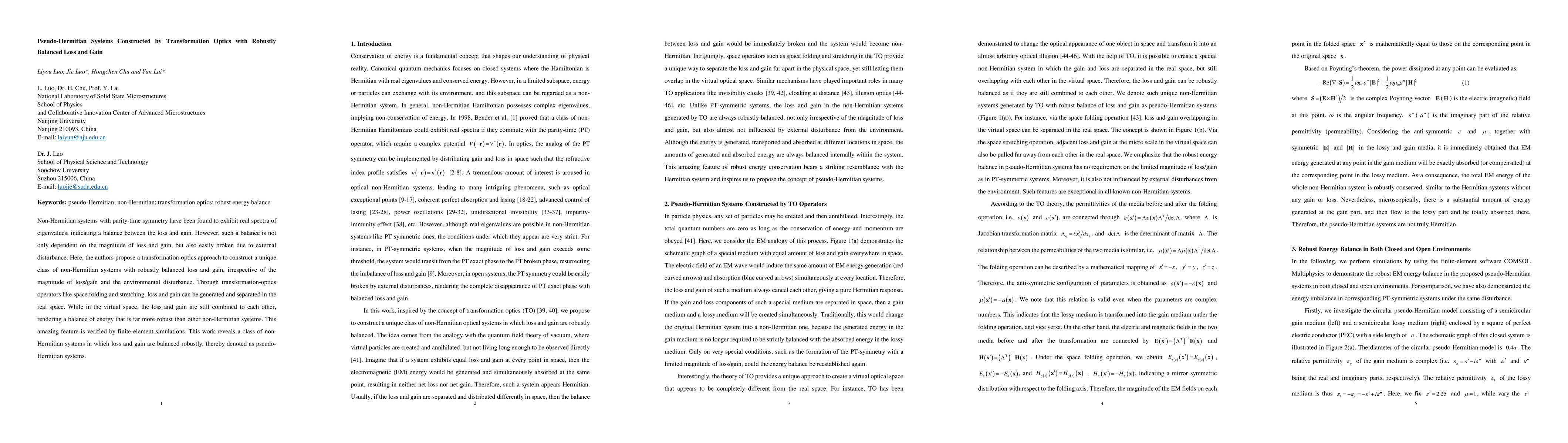 Non-Hermitian systems with parity-time symmetry have been found to exhibit real spectra of eigenvalues, indicating a balance between the loss and gain. However, such a balance is not only dependent on the magnitude of loss and gain, but also easily broken due to external disturbance. Here, the authors propose a transformation-optics approach to construct a unique class of non-Hermitian systems with robustly balanced loss and gain, irrespective of the magnitude of loss/gain and the environmental disturbance. Through transformation-optics operators like space folding and stretching, loss and gain can be generated and separated in the real space. While in the virtual space, the loss and gain are still combined to each other, rendering a balance of energy that is far more robust than other non-Hermitian systems. This amazing feature is verified by finite-element simulations. This work reveals a class of non-Hermitian systems in which loss and gain are balanced robustly, thereby denoted as pseudo-Hermitian systems.