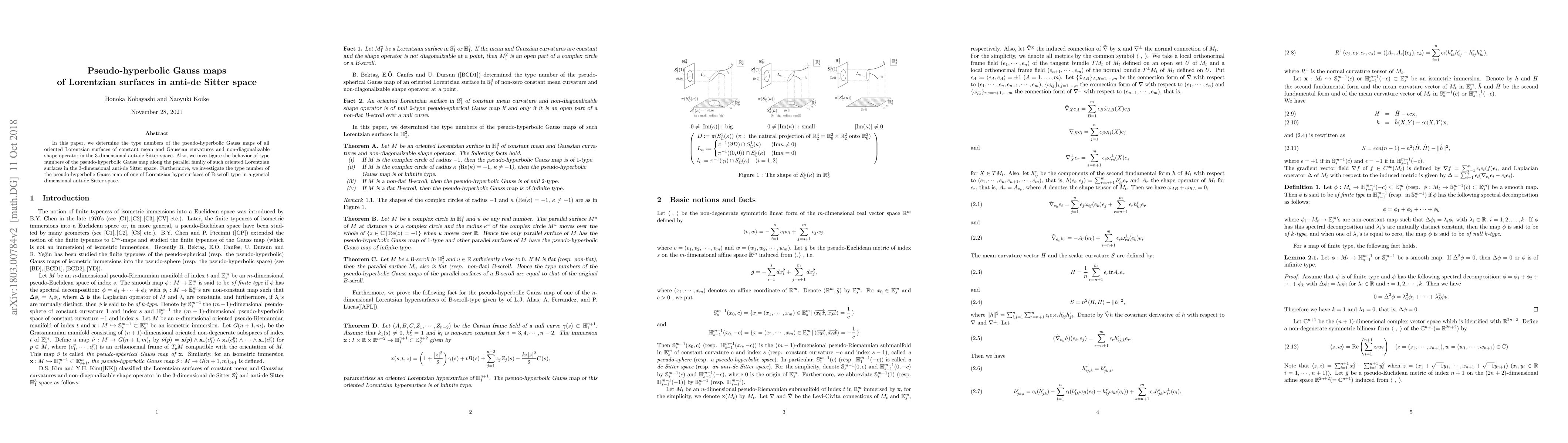 Summary: This research determines the type numbers of pseudo-hyperbolic Gauss maps for oriented Lorentzian surfaces in 3D anti-de Sitter space, focusing on constant curvature and non-diagonalizable shape operators, and examines the behavior along parallel families and for B-scroll type hypersurfaces in higher dimensions.