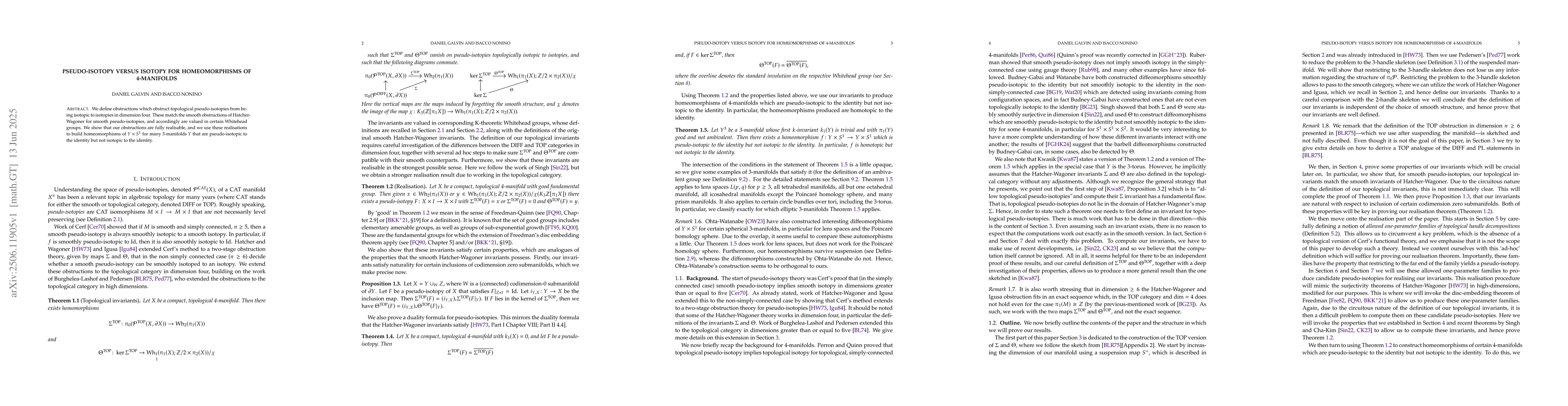 We define obstructions which obstruct topological pseudo-isotopies from being isotopic to isotopies in dimension four. These match the smooth obstructions of Hatcher-Wagoner for smooth pseudo-isotopies, and accordingly are valued in certain Whitehead groups. We show that our obstructions are fully realisable, and we use these realisations to build homeomorphisms of $Y\times S^1$ for many 3-manifolds $Y$ that are pseudo-isotopic to the identity but not isotopic to the identity.