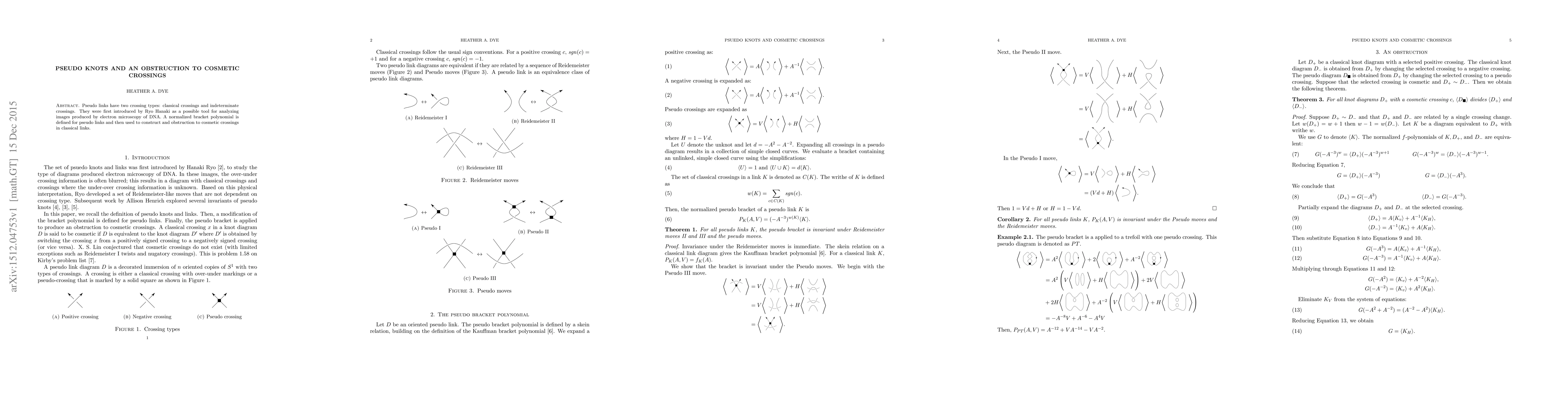 Pseudo links have two crossing types: classical crossings and indeterminate crossings. They were first introduced by Ryo Hanaki as a possible tool for analyzing images produced by electron microscopy of DNA. A normalized bracket polynomial is defined for pseudo links and then used to construct and obstruction to cosmetic crossings in classical links.