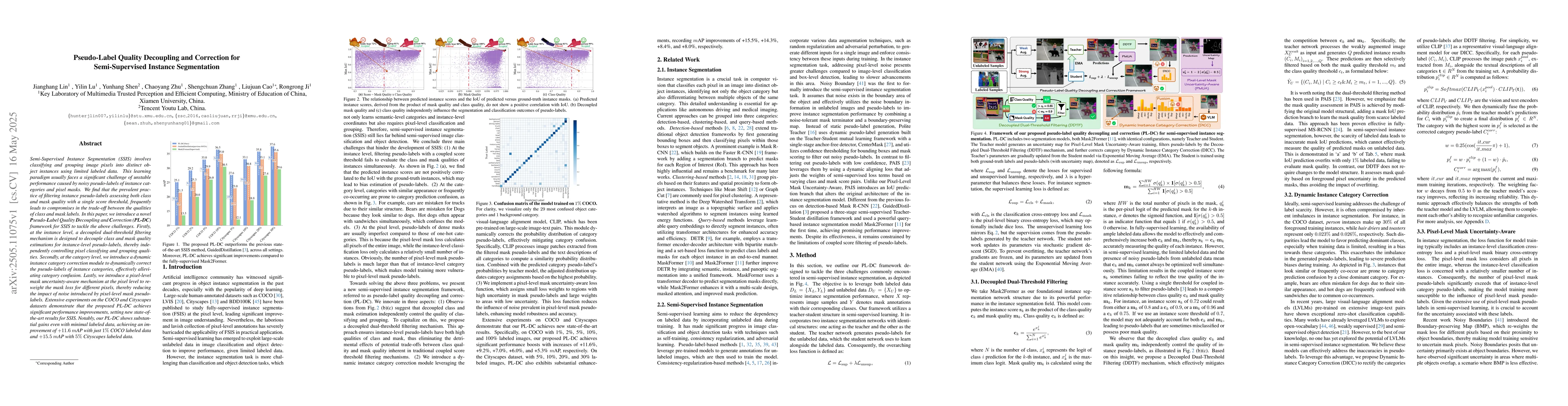 The research proposes a Pseudo-Label Quality Decoupling and Correction (PL-DC) framework for Semi-Supervised Instance Segmentation (SSIS). It introduces a decoupled dual-threshold filtering mechanism for instance-level pseudo-labels, a dynamic instance category correction module for category-level corrections, and a pixel-level mask uncertainty-aware mechanism to re-weight mask loss for individual pixels.
