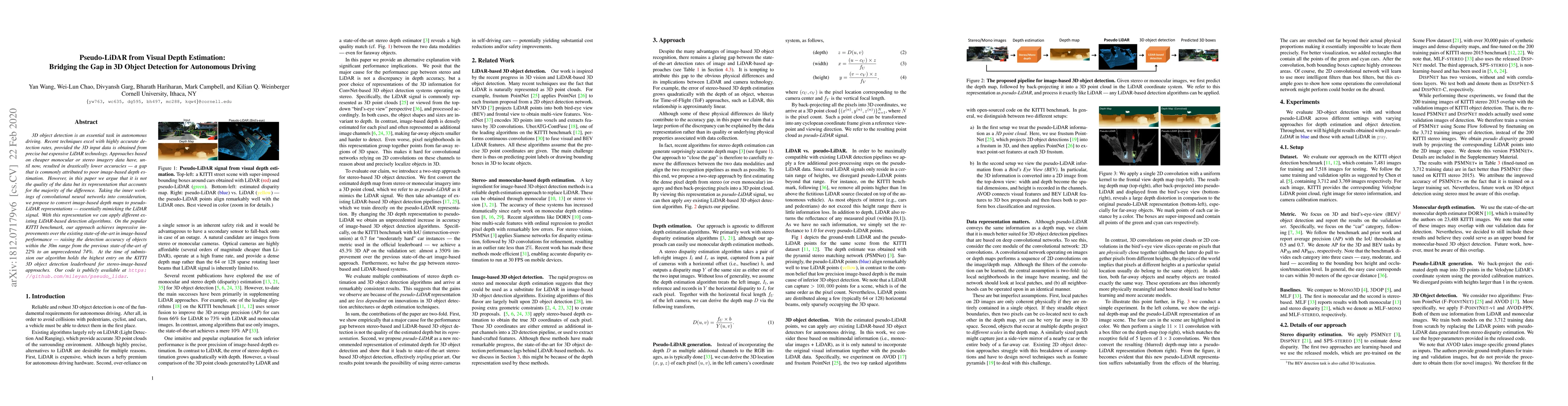 This paper proposes a method to convert visual depth maps into pseudo-LiDAR representations, improving 3D object detection accuracy using only monocular or stereo images. The approach achieves a significant leap in detection accuracy, raising the state-of-the-art on the KITTI benchmark from 22% to 74%.