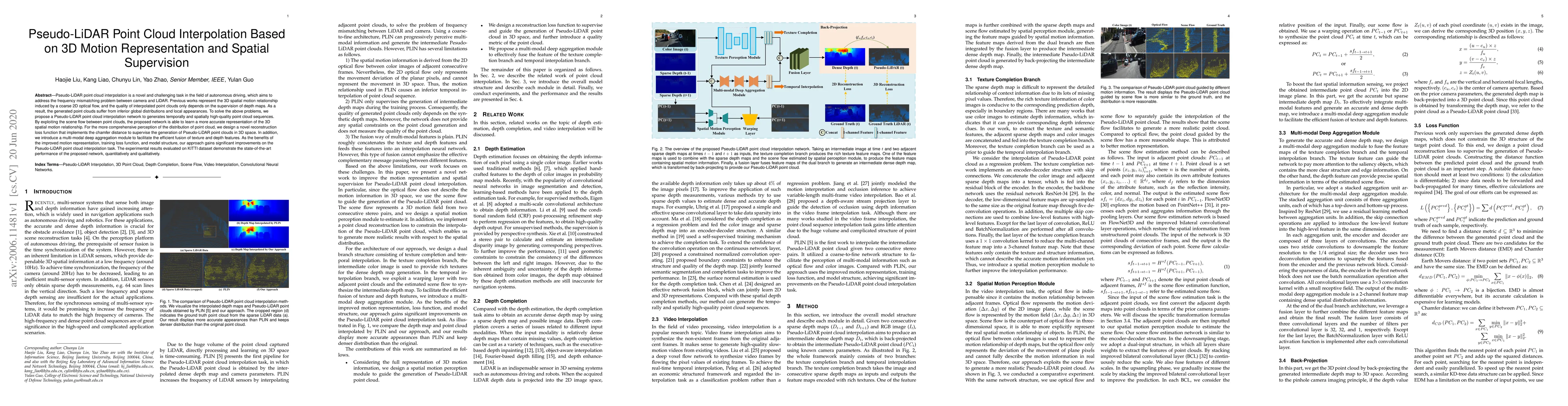This paper proposes a Pseudo-LiDAR point cloud interpolation network to address frequency mismatching between camera and LiDAR in autonomous driving. The network leverages scene flow and spatial supervision to generate high-quality point clouds, achieving state-of-the-art performance on the KITTI dataset.