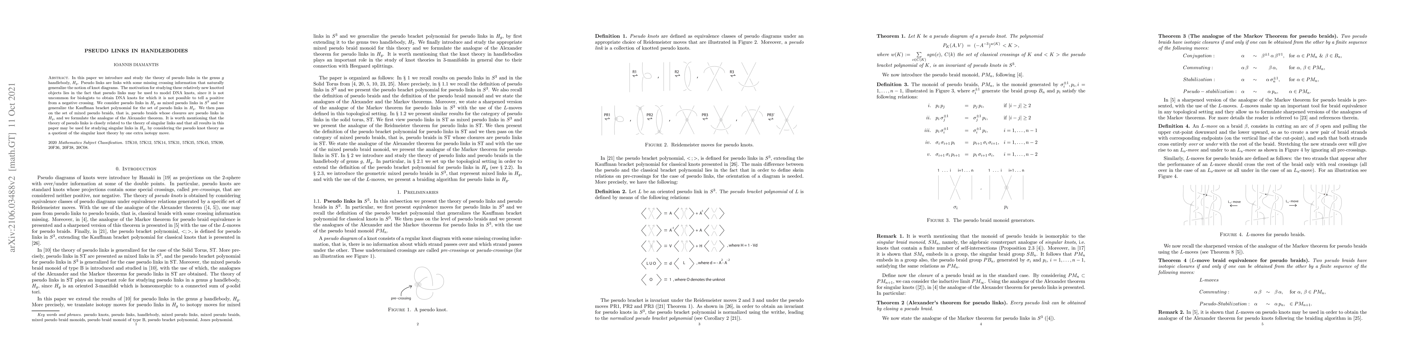 This paper introduces pseudo links in genus $g$ handlebodies $H_g$, generalizing knot diagrams with incomplete crossing information, which can model DNA knots. It extends the Kauffman bracket polynomial and discusses mixed pseudo braids, formulating an analogue of the Alexander theorem.
