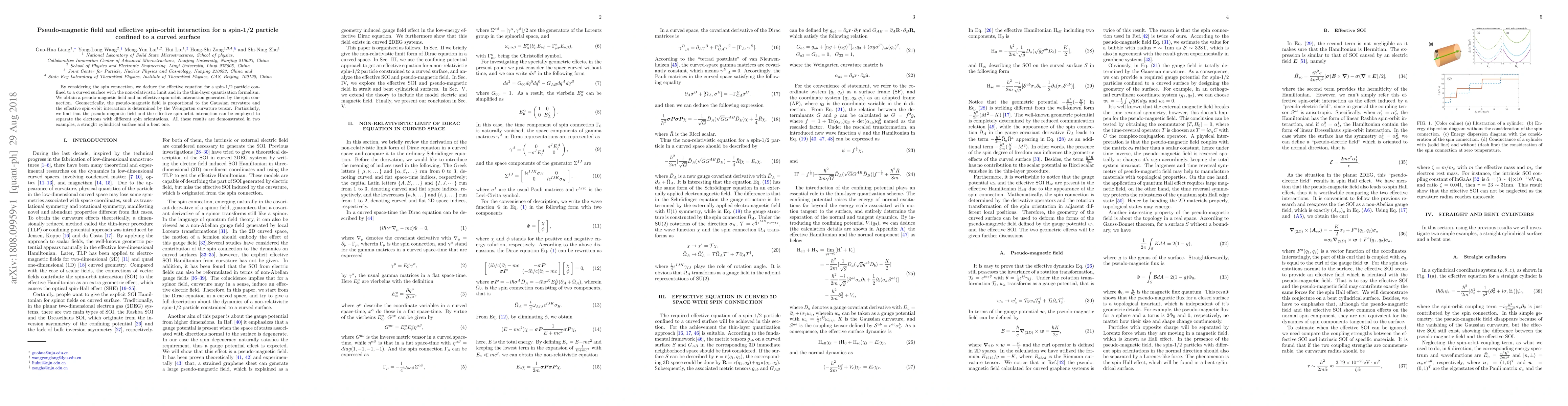This paper derives the effective equation for a spin-1/2 particle on a curved surface, revealing a pseudo-magnetic field and effective spin-orbit interaction generated by the spin connection. These phenomena are proportional to the Gaussian curvature and Weingarten curvature tensor, respectively, and can separate electrons based on spin orientation.