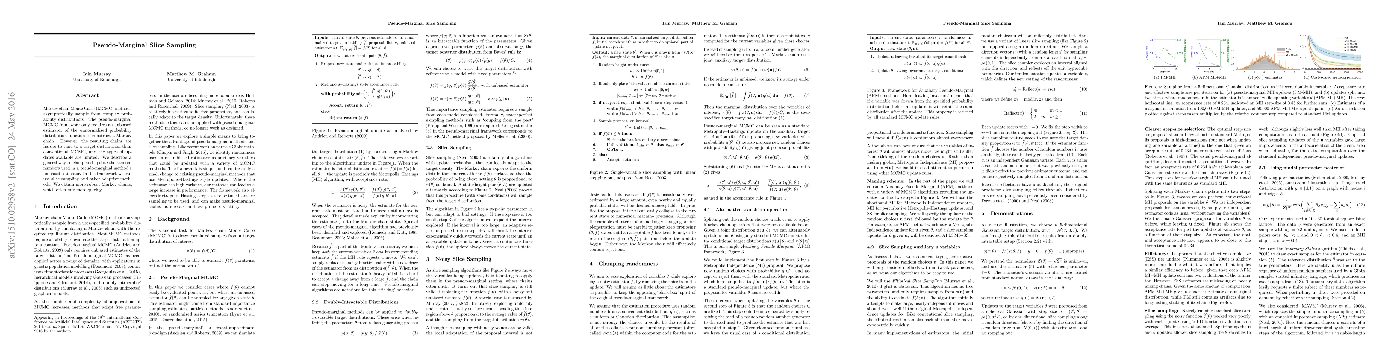 This paper proposes a method to improve pseudo-marginal slice sampling in Markov chain Monte Carlo methods by clamping and updating random numbers used in the unbiased estimator, resulting in more robust and quickly mixing chains.