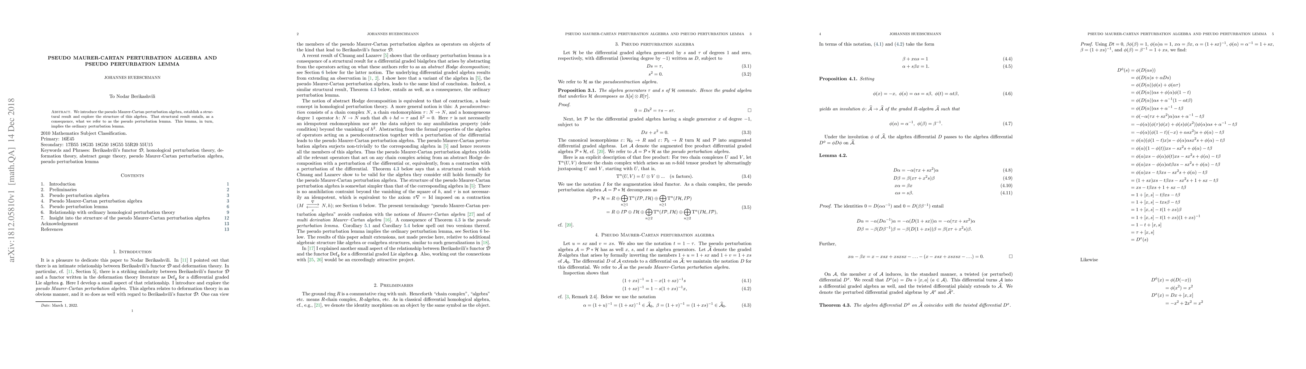 We introduce the pseudo Maurer-Cartan perturbation algebra, establish a structural result and explore the structure of this algebra. That structural result entails, as a consequence, what we refer to as the pseudo perturbation lemma. This lemma, in turn, implies the ordinary perturbation lemma.