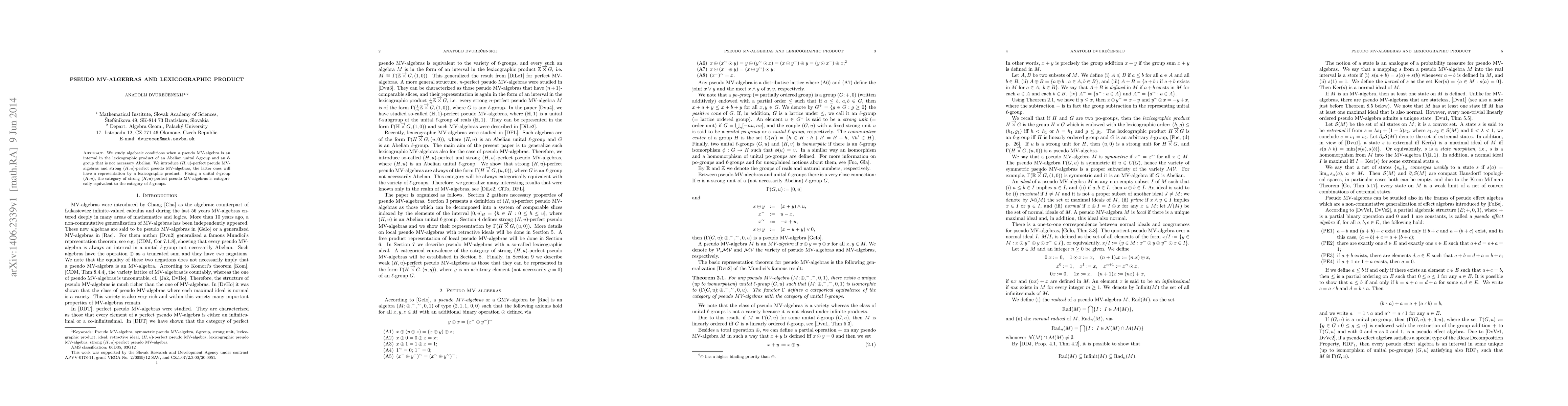 We study algebraic conditions when a pseudo MV-algebra is an interval in the lexicographic product of an Abelian unital $\ell$-group and an $\ell$-group that is not necessary Abelian. We introduce $(H,u)$-perfect pseudo MV-algebras and strong $(H,u)$-perfect pseudo MV-algebras, the latter ones will have a representation by a lexicographic product. Fixing a unital $\ell$-group $(H,u)$, the category of strong $(H,u)$-perfect pseudo MV-algebras is categorically equivalent to the category of $\ell$-groups.