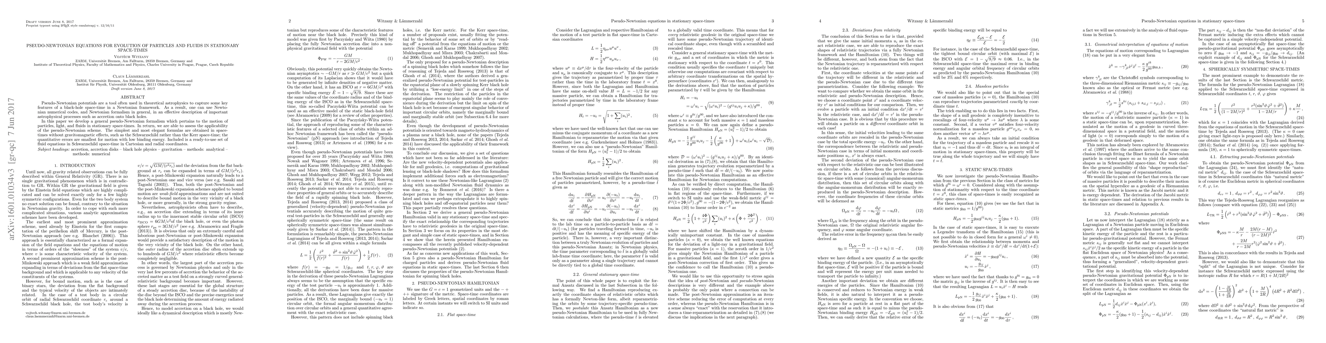 This paper develops a general pseudo-Newtonian formalism for describing the motion of particles, light, and fluids in stationary space-times, particularly in the Schwarzschild space-time. It assesses the applicability and accuracy of this scheme, finding it most effective for low binding energy scenarios and in space-times without gravitomagnetic effects.