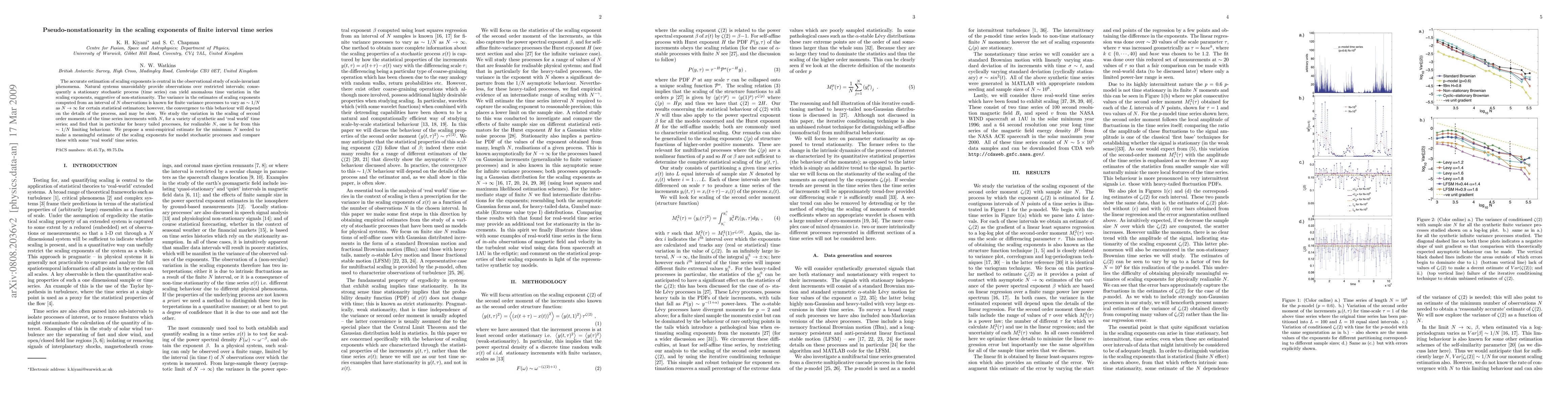 The accurate estimation of scaling exponents is central in the observational study of scale-invariant phenomena. Natural systems unavoidably provide observations over restricted intervals; consequently a stationary stochastic process (time series) can yield anomalous time variation in the scaling exponents, suggestive of non-stationarity. The variance in the estimates of scaling exponents computed from an interval of N observations is known for finite variance processes to vary as ~1/N as N goes to infinity for certain statistical estimators; however, the convergence to this behaviour will depend on the details of the process, and may be slow. We study the variation in the scaling of second order moments of the time series increments with N, for a variety of synthetic and `real world' time series; and find that in particular for heavy tailed processes, for realizable N, one is far from this 1/N limiting behaviour. We propose a semi-empirical estimate for the minimum N needed to make a meaningful estimate of the scaling exponents for model stochastic processes and compare these with some `real world' time series.