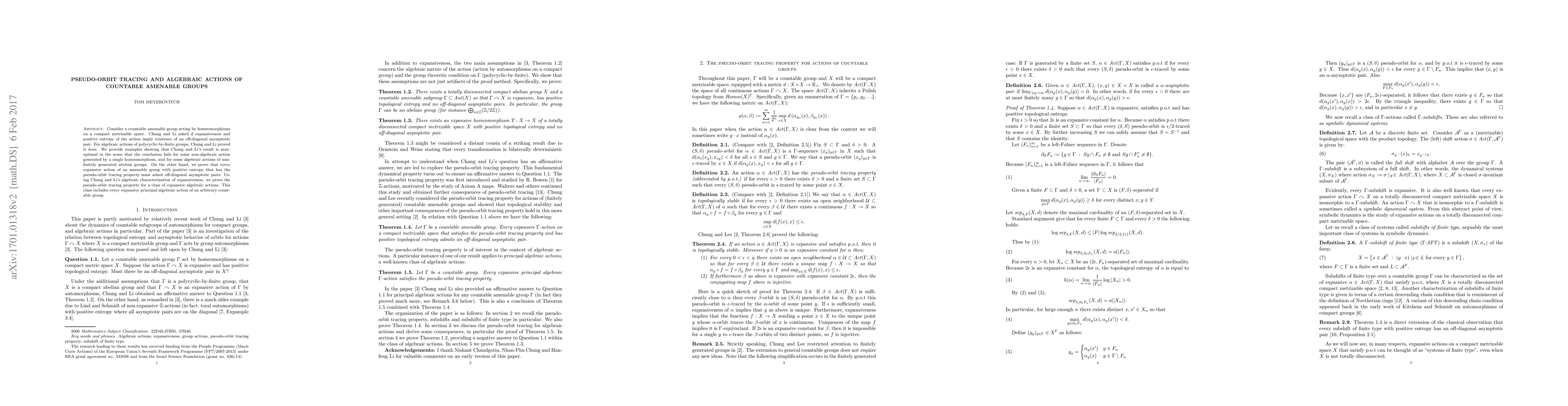 Consider a countable amenable group acting by homeomorphisms on a compact metrizable space. Chung and Li asked if expansiveness and positive entropy of the action imply existence of an off-diagonal asymptotic pair. For algebraic actions of polycyclic-by-finite groups, Chung and Li proved it does. We provide examples showing that Chung and Li's result is near-optimal in the sense that the conclusion fails for some non-algebraic action generated by a single homeomorphism, and for some algebraic actions of non-finitely generated abelian groups. On the other hand, we prove that every expansive action of an amenable group with positive entropy that has the pseudo-orbit tracing property must admit off-diagonal asymptotic pairs. Using Chung and Li's algebraic characterization of expansiveness, we prove the pseudo-orbit tracing property for a class of expansive algebraic actions. This class includes every expansive principal algebraic action of an arbitrary countable group.