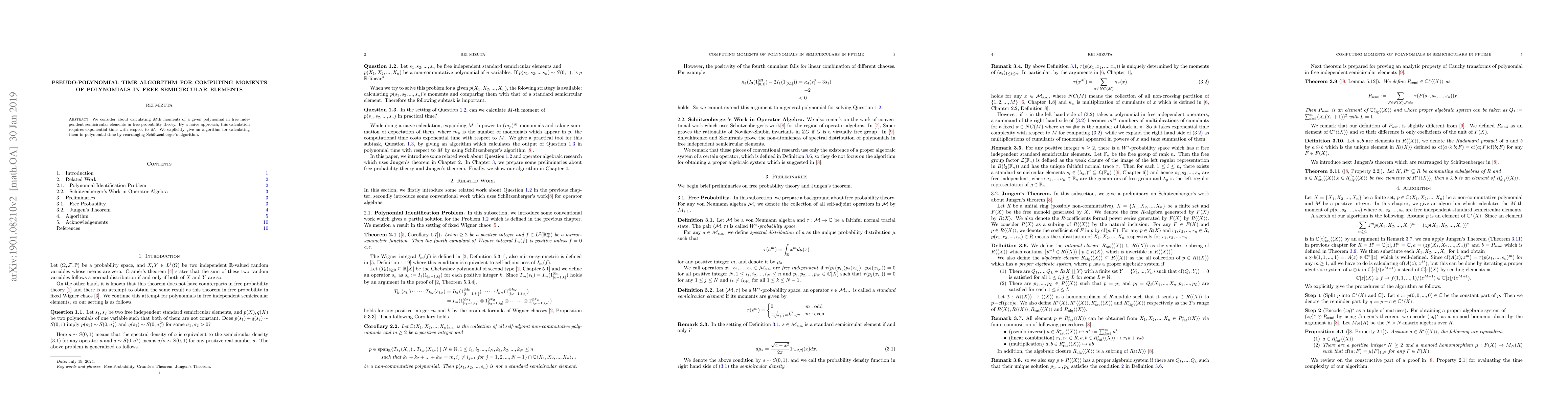Researchers have developed a new algorithm to calculate moments of polynomials in free semicircular elements in polynomial time, improving on an exponential approach and enabling faster calculations.