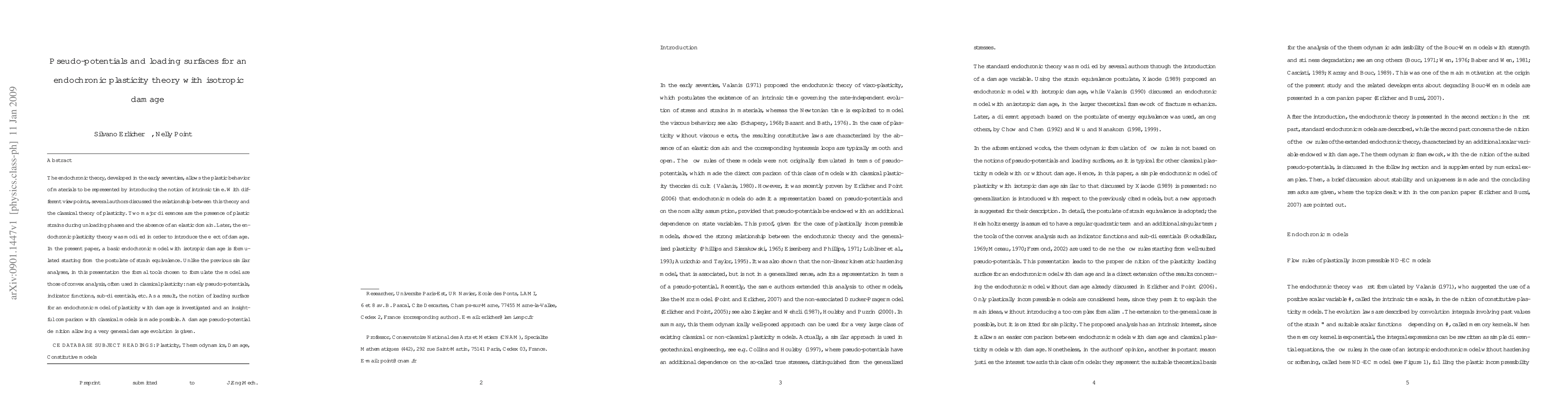 This paper formulates an endochronic plasticity theory with isotropic damage using tools from convex analysis, including pseudopotentials and loading surfaces. It compares the model's behavior to classical plasticity, highlighting differences in plastic strain behavior and the absence of an elastic domain.