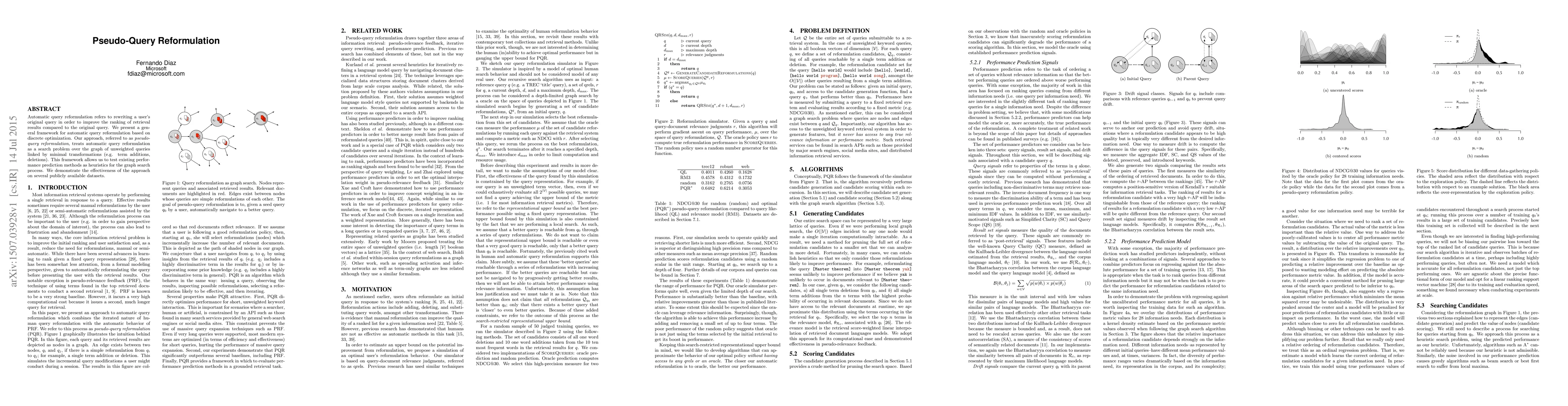 Automatic query reformulation refers to rewriting a user's original query in order to improve the ranking of retrieval results compared to the original query. We present a general framework for automatic query reformulation based on discrete optimization. Our approach, referred to as pseudo-query reformulation, treats automatic query reformulation as a search problem over the graph of unweighted queries linked by minimal transformations (e.g. term additions, deletions). This framework allows us to test existing performance prediction methods as heuristics for the graph search process. We demonstrate the effectiveness of the approach on several publicly available datasets.