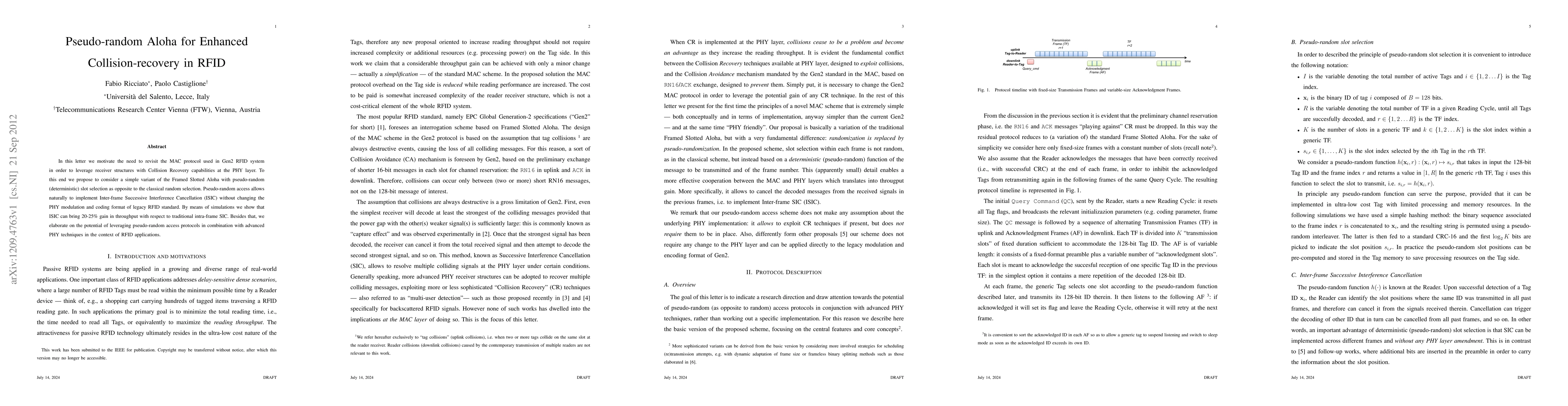 In this letter we motivate the need to revisit the MAC protocol used in Gen2 RFID system in order to leverage receiver structures with Collision Recovery capabilities at the PHY layer. To this end we propose to consider a simple variant of the Framed Slotted Aloha with pseudo-random (deterministic) slot selection as opposite to the classical random selection. Pseudo-random access allows naturally to implement Inter-frame Successive Interference Cancellation (ISIC) without changing the PHY modulation and coding format of legacy RFID standard. By means of simulations we show that ISIC can bring 20-25% gain in throughput with respect to traditional intra-frame SIC. Besides that, we elaborate on the potential of leveraging pseudo-random access protocols in combination with advanced PHY techniques in the context of RFID applications.