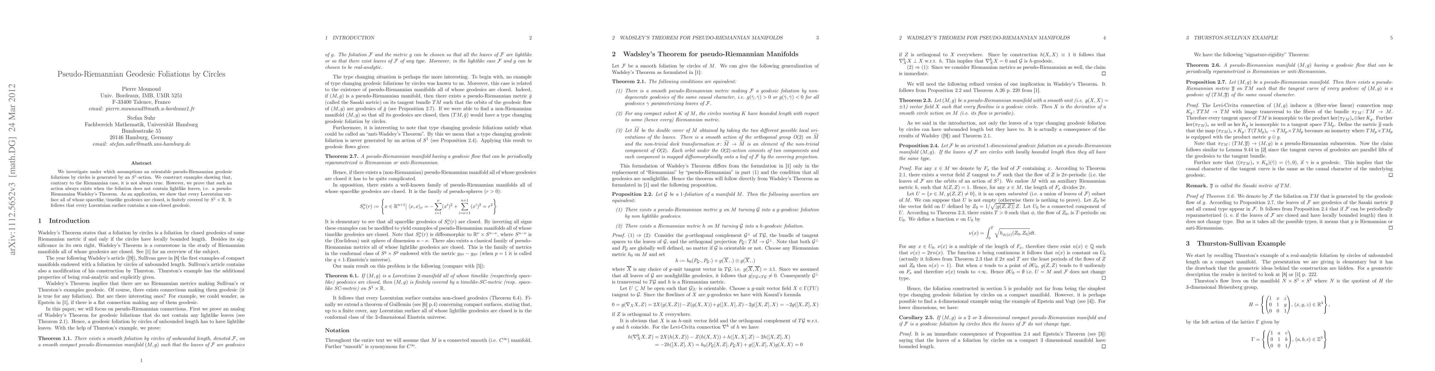 We investigate under which assumptions an orientable pseudo-Riemannian geodesic foliations by circles is generated by an $S^1$-action. We construct examples showing that, contrary to the Riemannian case, it is not always true. However, we prove that such an action always exists when the foliation does not contain lightlike leaves, i.e. a pseudo-Riemannian Wadsley's Theorem. As an application, we show that every Lorentzian surface all of whose spacelike/timelike geodesics are closed, is finitely covered by $S^1\times \R$. It follows that every Lorentzian surface contains a non-closed geodesic.