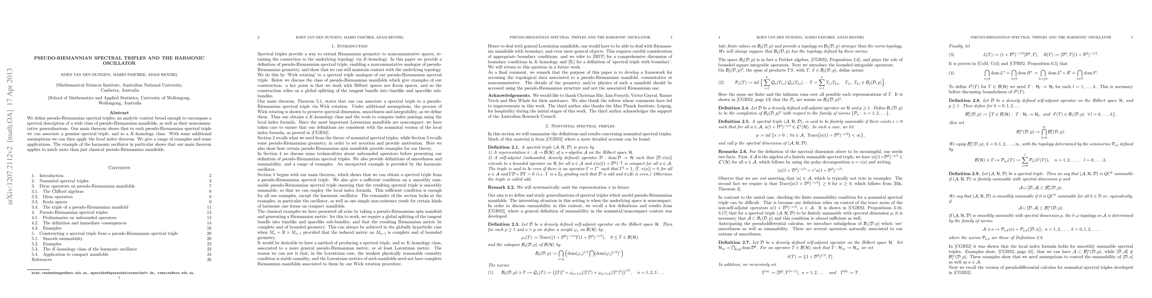 We define pseudo-Riemannian spectral triples, an analytic context broad enough to encompass a spectral description of a wide class of pseudo-Riemannian manifolds, as well as their noncommutative generalisations. Our main theorem shows that to each pseudo-Riemannian spectral triple we can associate a genuine spectral triple, and so a K-homology class. With some additional assumptions we can then apply the local index theorem. We give a range of examples and some applications. The example of the harmonic oscillator in particular shows that our main theorem applies to much more than just classical pseudo-Riemannian manifolds.