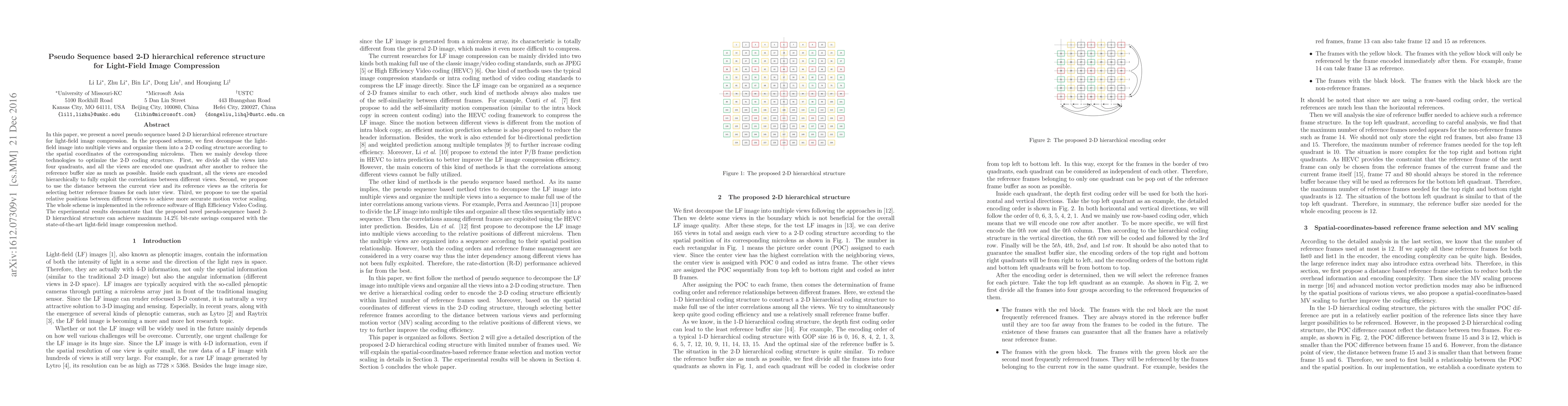 A new method for compressing light-field images achieves up to 14.2% bit-rate savings through a pseudo-sequence based 2-D hierarchical reference structure.