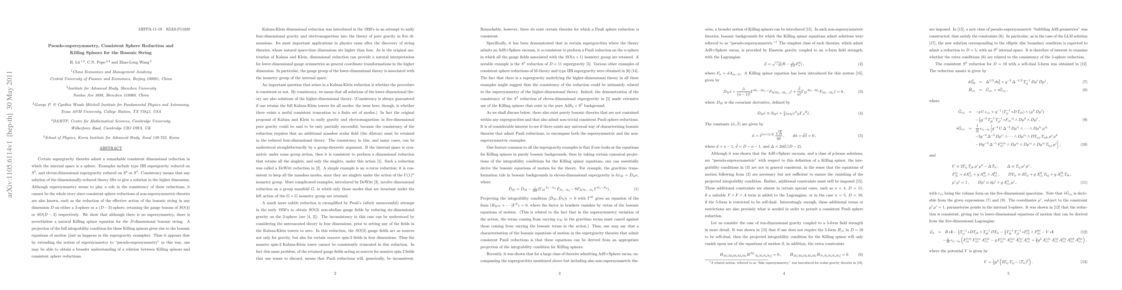 Certain supergravity theories admit a remarkable consistent dimensional reduction in which the internal space is a sphere. Examples include type IIB supergravity reduced on S^5, and eleven-dimensional supergravity reduced on S^4 or S^7. Consistency means that any solution of the dimensionally-reduced theory lifts to give a solution in the higher dimension. Although supersymmetry seems to play a role in the consistency of these reductions, it cannot be the whole story since consistent sphere reductions of non-supersymmetric theories are also known, such as the reduction of the effective action of the bosonic string in any dimension D on either a 3-sphere or a (D-3)-sphere, retaining the gauge bosons of SO(4) or SO(D-2) respectively. We show that although there is no supersymmetry, there is nevertheless a natural Killing spinor equation for the D-dimensional bosonic string. A projection of the full integrability condition for these Killing spinors gives rise to the bosonic equations of motion (just as happens in the supergravity examples). Thus it appears that by extending the notion of supersymmetry to "pseudo-supersymmetry" in this way, one may be able to obtain a broader understanding of a relation between Killing spinors and consistent sphere reductions.