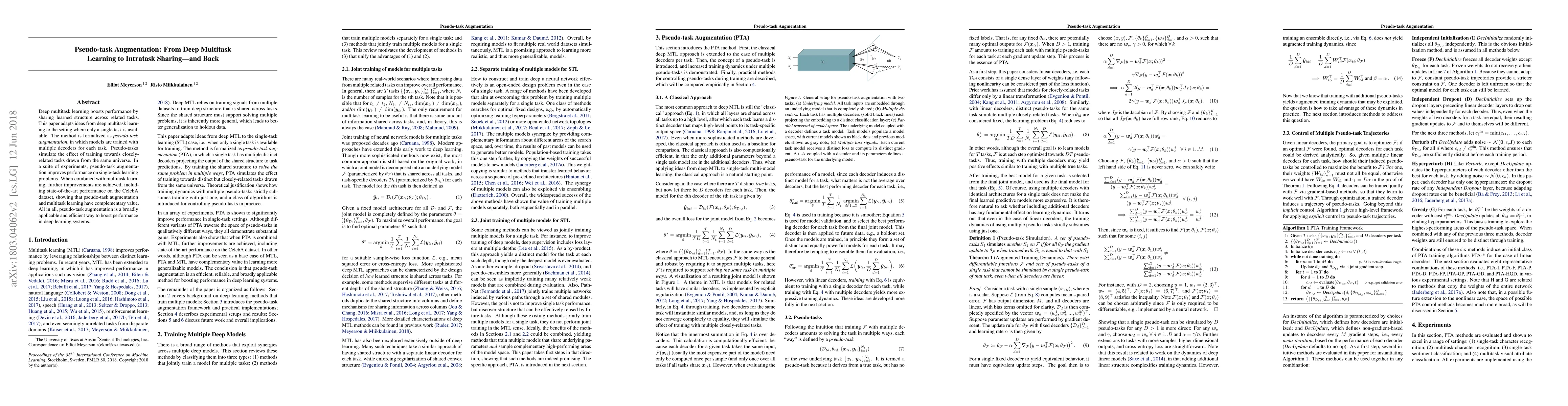 This paper introduces pseudo-task augmentation to enhance single-task learning by simulating the benefits of multitask learning through multiple decoders. The method shows improved performance on single-task problems and achieves state-of-the-art results when combined with multitask learning, demonstrating its complementary value.