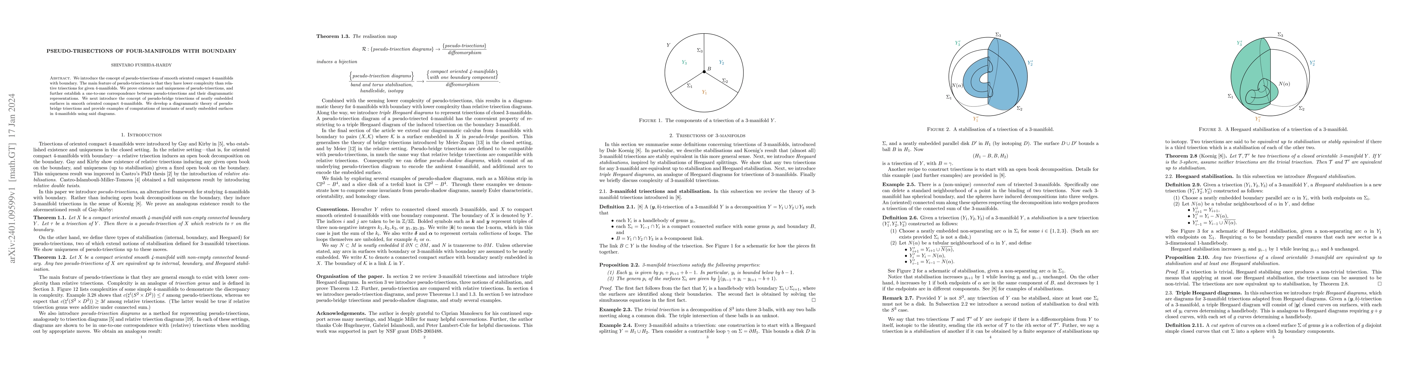 We introduce the concept of pseudo-trisections of smooth oriented compact 4-manifolds with boundary. The main feature of pseudo-trisections is that they have lower complexity than relative trisections for given 4-manifolds. We prove existence and uniqueness of pseudo-trisections, and further establish a one-to-one correspondence between pseudo-trisections and their diagrammatic representations. We next introduce the concept of pseudo-bridge trisections of neatly embedded surfaces in smooth oriented compact 4-manifolds. We develop a diagrammatic theory of pseudo-bridge trisections and provide examples of computations of invariants of neatly embedded surfaces in 4-manifolds using said diagrams.