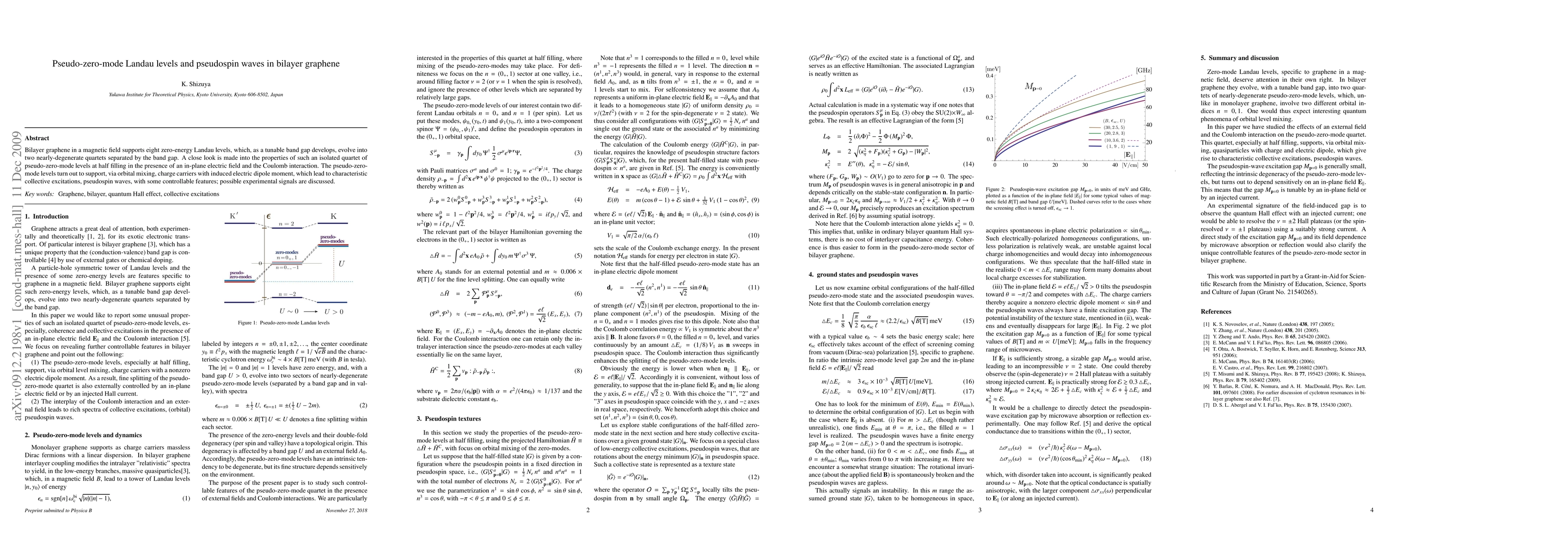 Bilayer graphene exhibits pseudo-zero-mode Landau levels that evolve into nearly-degenerate quartets with tunable band gaps, supporting pseudospin waves and electric dipole moments under an electric field and Coulomb interaction, with potential experimental detection.