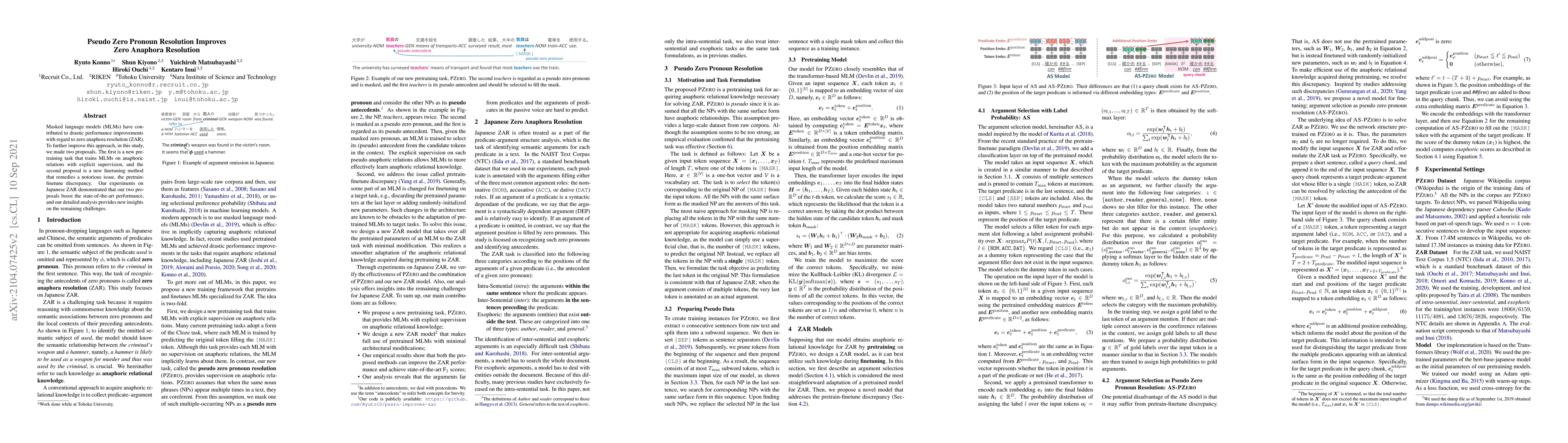 Masked language models (MLMs) have contributed to drastic performance improvements with regard to zero anaphora resolution (ZAR). To further improve this approach, in this study, we made two proposals. The first is a new pretraining task that trains MLMs on anaphoric relations with explicit supervision, and the second proposal is a new finetuning method that remedies a notorious issue, the pretrain-finetune discrepancy. Our experiments on Japanese ZAR demonstrated that our two proposals boost the state-of-the-art performance, and our detailed analysis provides new insights on the remaining challenges.