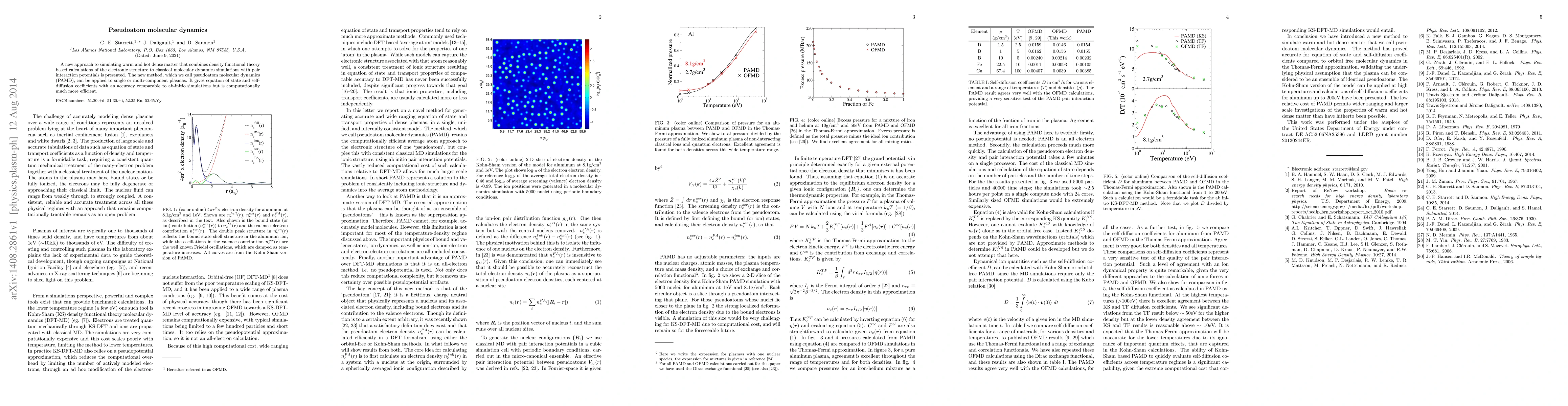 The paper introduces pseudoatom molecular dynamics (PAMD), a new method combining density functional theory with classical molecular dynamics to simulate warm and hot dense matter, offering accurate results for equation of state and self-diffusion coefficients at a lower computational cost than ab-initio simulations.