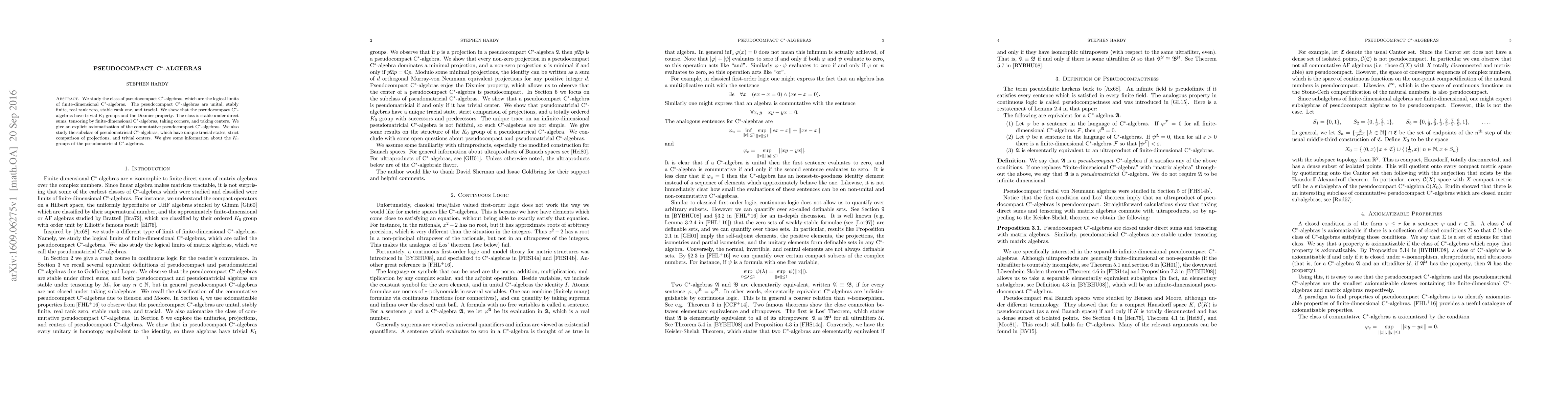 This paper explores pseudocompact C*-algebras, characterized by unitality, stability, and zero real rank, and demonstrates their trivial K_1 groups and Dixmier property. It also examines pseudomatricial C*-algebras, highlighting their unique tracial states and strict comparison of projections.