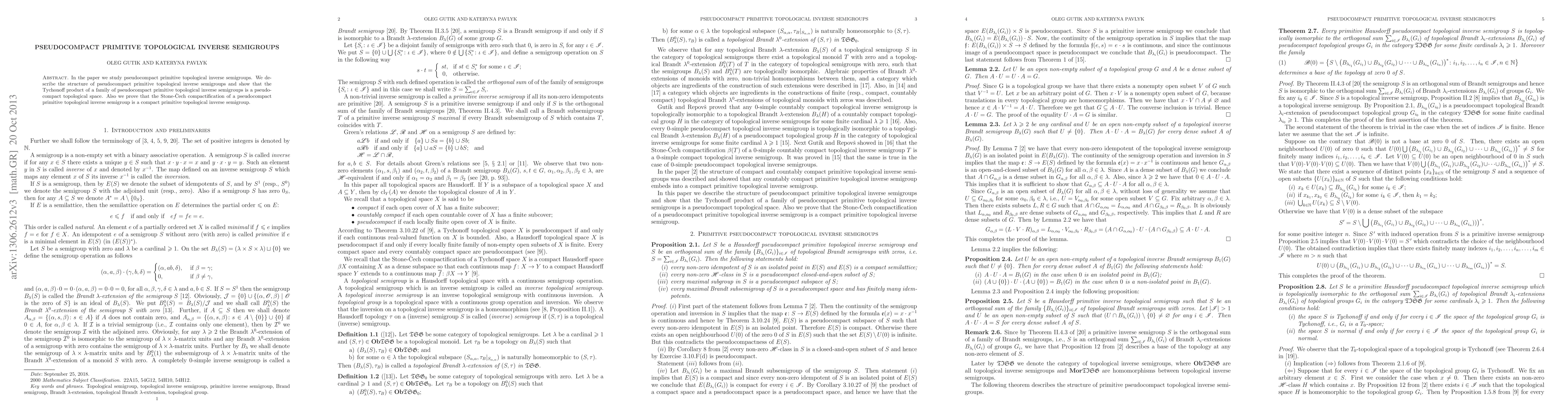 This paper investigates the structure of pseudocompact primitive topological inverse semigroups, revealing that a Tychonoff product of such semigroups remains pseudocompact and their Stone-\v{C}ech compactifications are compact primitive topological inverse semigroups.