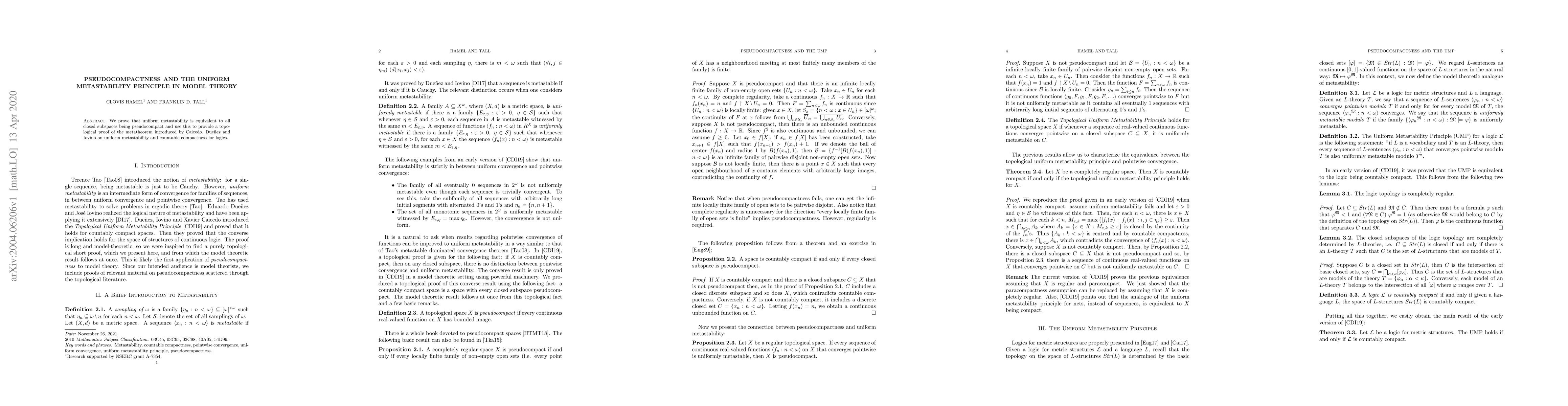 We prove that uniform metastability is equivalent to all closed subspaces being pseudocompact and use this to provide a topological proof of the metatheorem introduced by Caicedo, Duenez and Iovino on uniform metastability and countable compactness for logics.