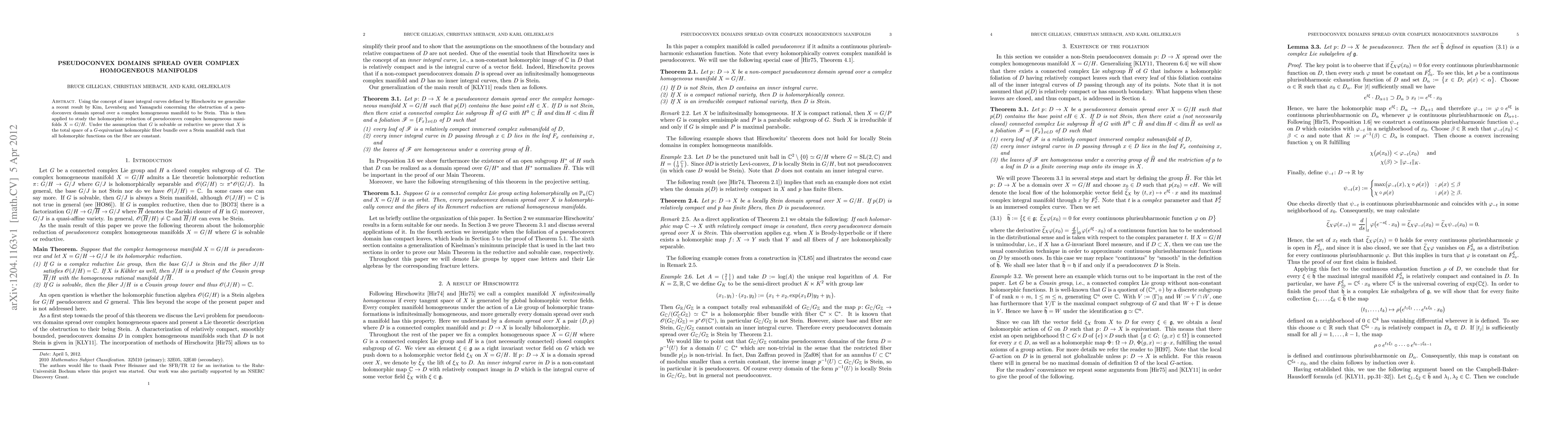 Using the concept of inner integral curves defined by Hirschowitz we generalize a recent result by Kim, Levenberg and Yamaguchi concerning the obstruction of a pseudoconvex domain spread over a complex homogeneous manifold to be Stein. This is then applied to study the holomorphic reduction of pseudoconvex complex homogeneous manifolds X=G/H. Under the assumption that G is solvable or reductive we prove that X is the total space of a G-equivariant holomorphic fiber bundle over a Stein manifold such that all holomorphic functions on the fiber are constant.