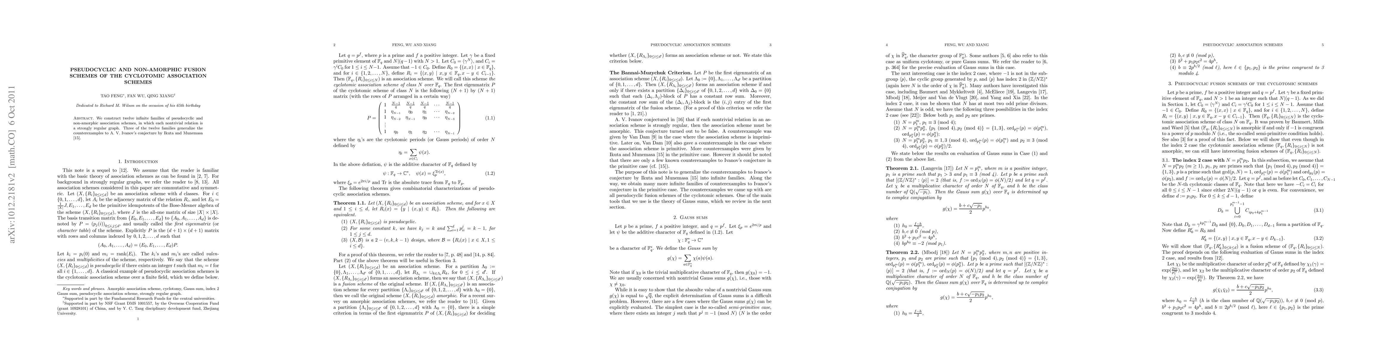 We construct twelve infinite families of pseudocyclic and non-amorphic association schemes, in which each nontrivial relation is a strongly regular graph. Three of the twelve families generalize the counterexamples to A. V. Ivanov's conjecture by Ikuta and Munemasa [15].