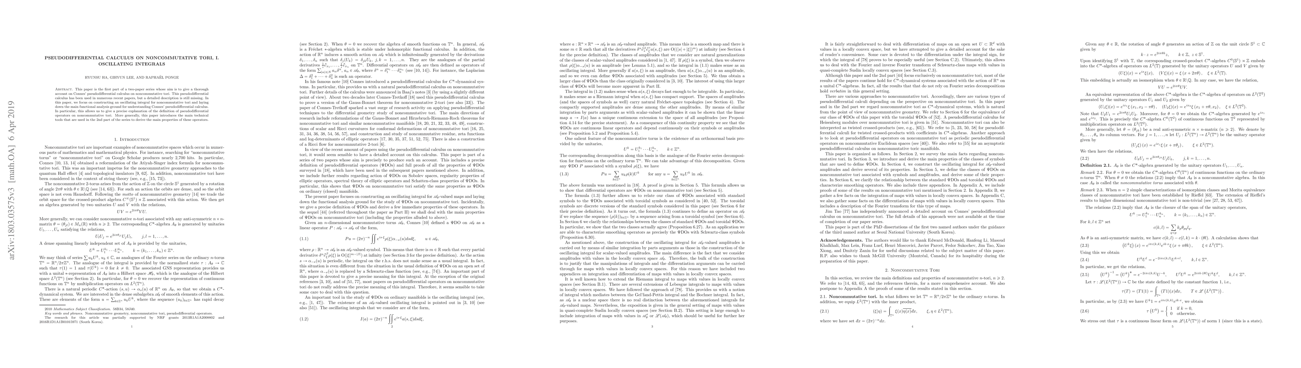 The research employs pseudodifferential calculus on noncommutative tori, focusing on constructing oscillating integrals and laying the groundwork for Connes' pseudodifferential calculus. It introduces technical tools for deriving operator properties and establishes equivalence with toroidal pseudo-differential operators considered by other authors.