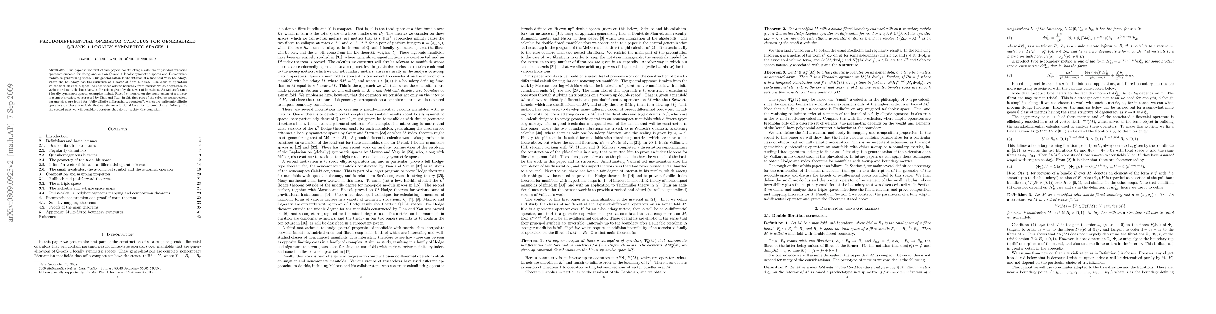 This paper establishes the foundation for a pseudodifferential operator calculus tailored for Q-rank 1 locally symmetric spaces and their generalizations, including Ricci-flat metrics on varieties. It focuses on constructing parametrices for fully elliptic differential operators with additional invertibility conditions at infinity.