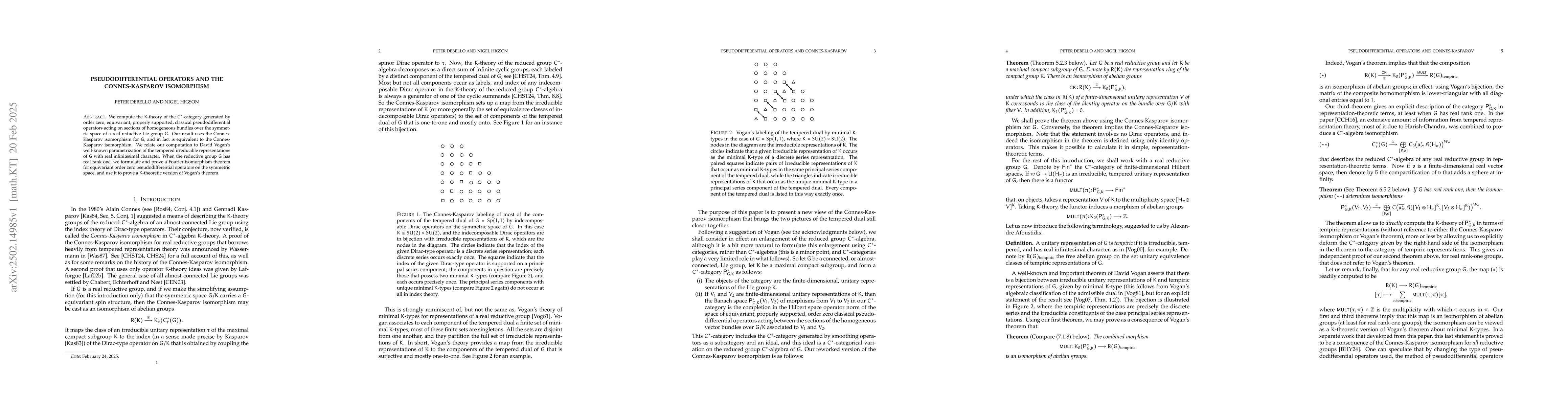 The paper introduces a detailed analysis of the K-theory of C*-categories of pseudodifferential operators, linking it to the Connes-Kasparov isomorphism and Vogan's parametrization of tempered irreducible representations.
