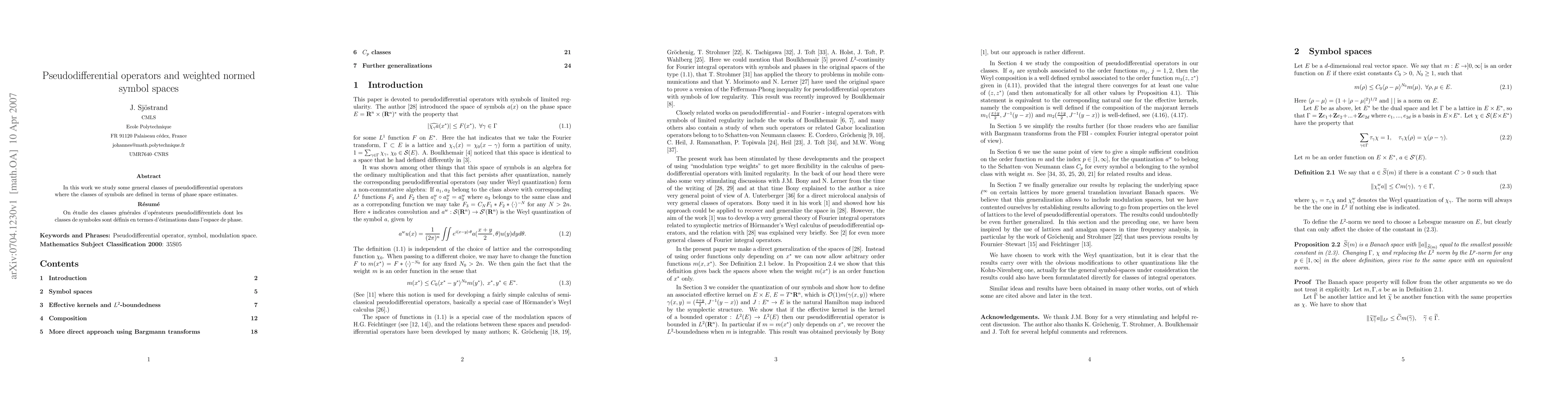 In this work we study some general classes of pseudodifferential operators whose symbols are defined in terms of phase space estimates.