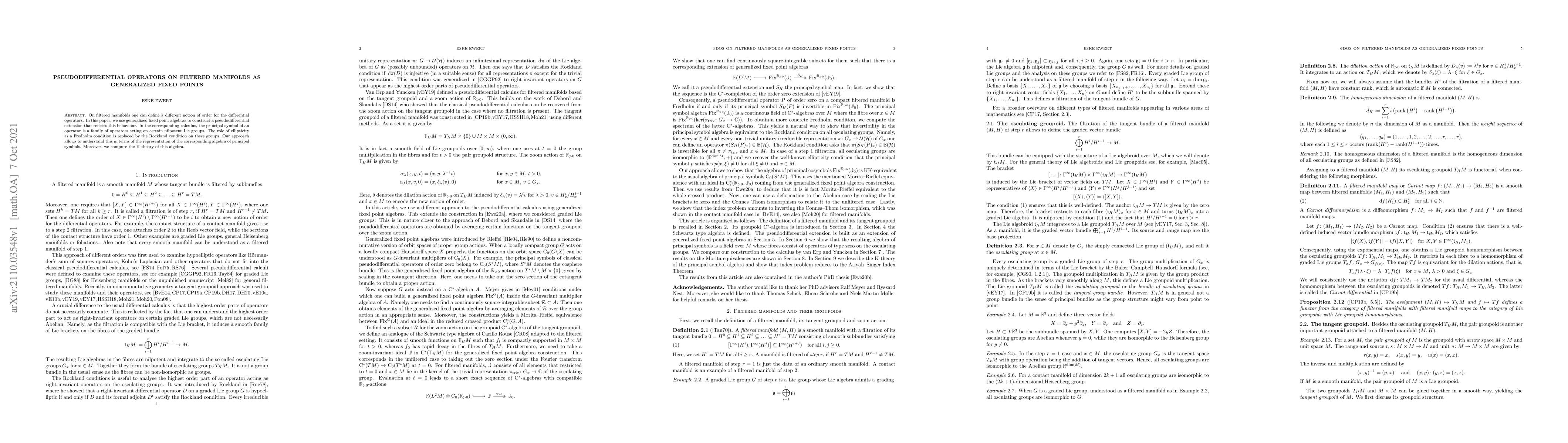 This paper constructs pseudodifferential operators on filtered manifolds using generalized fixed point algebras, where the principal symbol is represented as operators on nilpotent Lie groups. It replaces ellipticity with the Rockland condition and computes the $K$-theory of the algebra of principal symbols.